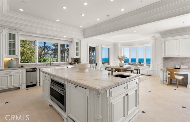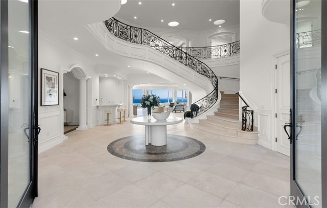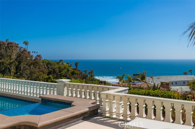 Experience unparalleled coastal luxury at this custom estate in the exclusive guard-gated community of Ritz Cove. Perched on an elevated half-acre bluff at the end of a cul-de-sac, this corner residence boasts no neighbor on the south side and offering panoramic vistas of Catalina Island, Salt Creek Beach, and the lush adjacent parkland. Designed for both grand entertaining and intimate relaxation, the home features five expansive en-suite bedrooms. Notably, two are primary level suites with sweeping ocean views through exceptional picture windows, and each adorned with a fireplace and private terrace—providing serene retreats that capture the essence of seaside living. All bedrooms are generously sized, with four featuring their own fireplaces and terraces, enhancing the indoor-outdoor lifestyle. The recently upgraded chef’s kitchen is a culinary masterpiece, equipped with Taj Mahal quartzite countertops, custom cabinetry, and top-of-the-line Sub-Zero and Wolf appliances. Floor-to-ceiling windows throughout the home flood the interiors with natural light and frame the breathtaking coastal scenery. Additional highlights include a grand two-story foyer, a wood-paneled study, a formal living and dining room, and an upstairs lounge with a fully equipped bar. The outdoor oasis is complete with a resort-style pool and spa, outdoor fire features, and a built-in cook center—perfect for entertaining against the backdrop of the Pacific Ocean. Situated between the renowned Ritz-Carlton and Waldorf Astoria resorts, and just moments from Monarch Beach Golf Links, this estate offers direct gated access to the beach trail, placing the sand and surf just steps from your backyard.