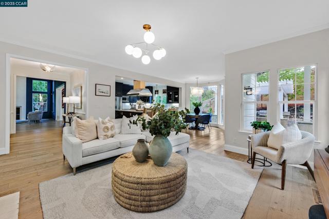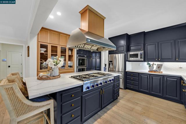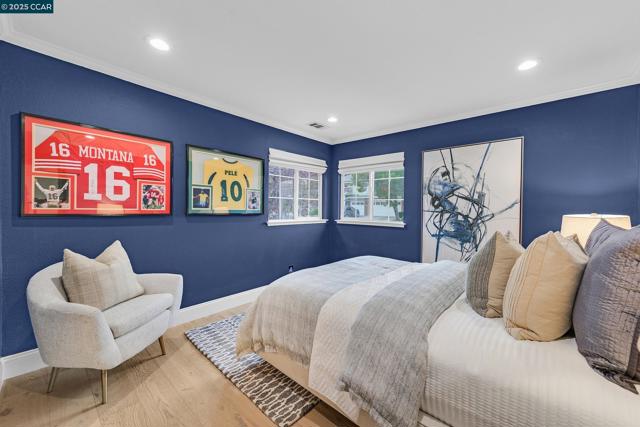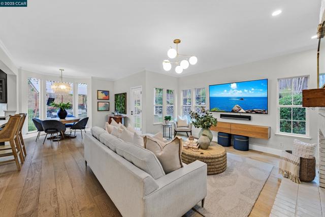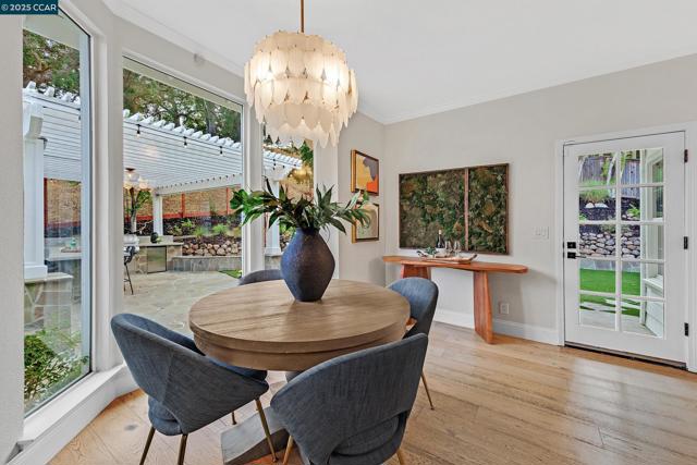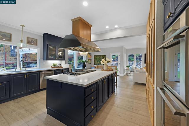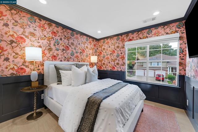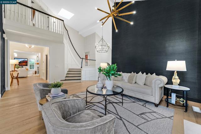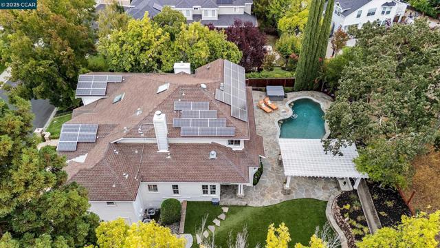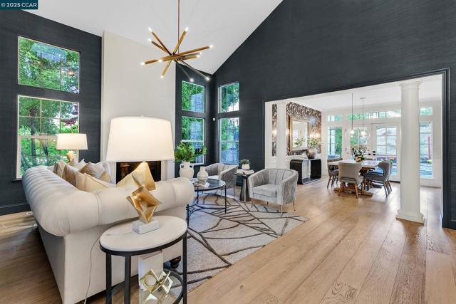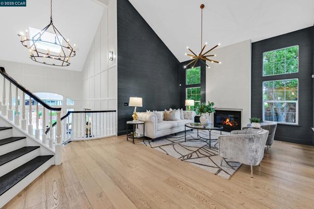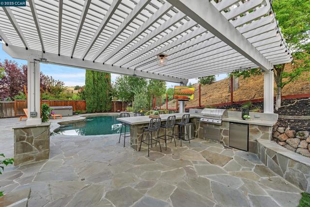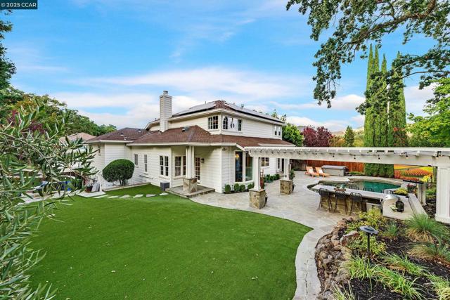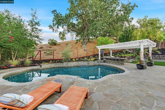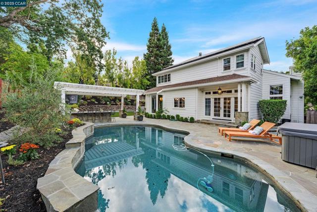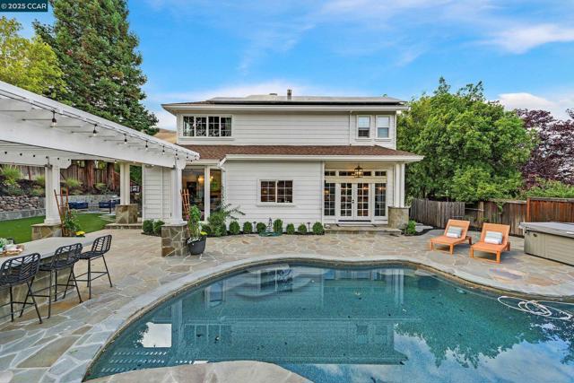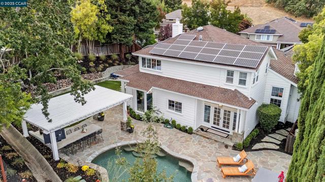 This exceptional, stunning residence in sought after Magee Ranch, offers 6 bedrooms, 4.5 baths. Designer touches and elegant details such as wood paneling, wallpaper, modern wood flooring and thoughtfully curated finishes elevate the home’s interior and blend timeless style with modern comfort. The grand foyer w/ soaring ceilings & custom chandelier opens to the formal living room with fireplace, adjacent to the formal dining room with crown molding, shutters, wall sconces, and french doors leading out to the stunning backyard. Spacious family room with fireplace, built-in shelves, crown molding open to the updated chef's dream kitchen w/ breakfast nook, solid surface counters, stainless appliances, 6 burner gas stovetop, double ovens. Primary bedroom has office/workout area, two sided fireplace, and large walk in closet w/organizers. The outdoor space is truly spectacular, perfect for entertaining and everyday enjoyment. Expansive private backyard with no rear neighbors, resort-style pool and spa, pavilion with built-in BBQ, sports court, and beautifully landscaped grounds designed for relaxation and fun. With its spacious layout & refined upgrades this property is a rare opportunity to enjoy luxury living at it's finest. Top schools w/ bus service, Mt Diablo hiking trails....