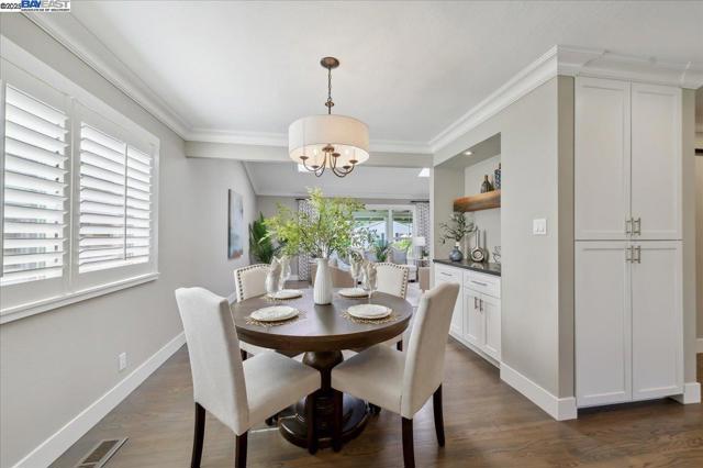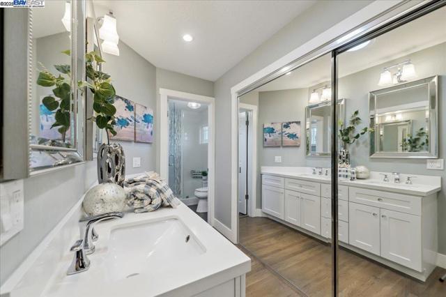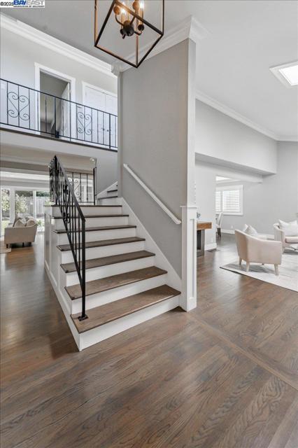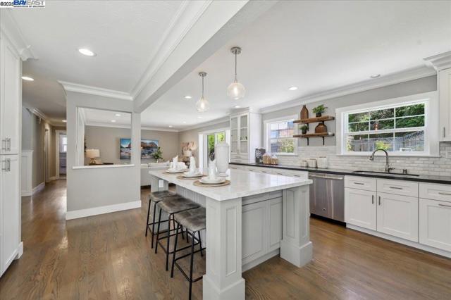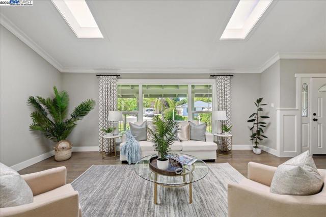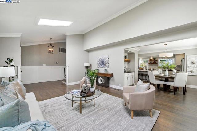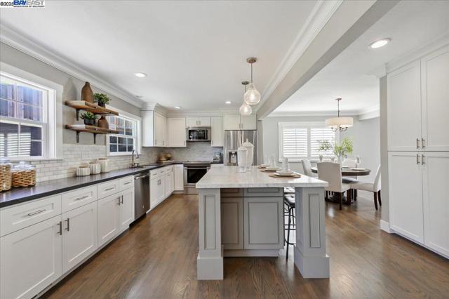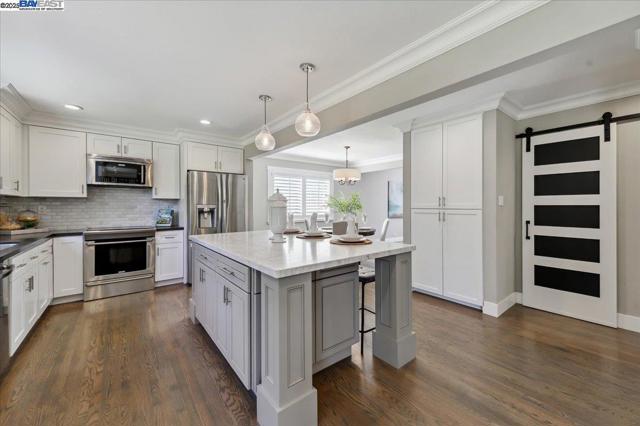 Gorgeous remodeled home in the highly desirable Greenbrook neighborhood! This beautiful home features 5 bedrooms and 3 full bathrooms, including a convenient first-floor bedroom and bath—ideal for guests or multi-gen living. Grey-washed hardwood flooring flows throughout, complemented by reclaimed wood accent shelves and warm designer lighting. The open-concept living area centers around a stunning oversized Carrera marble island and backsplash, stainless steel appliances, a large sink, and a walk-in pantry with a stylish barn door. Skylights and expansive windows flood the space with natural light, creating a bright and inviting atmosphere. The spacious primary suite includes a barn door leading to a beautifully updated bathroom. Enjoy outdoor living on the welcoming patio, plus potential RV/boat parking behind the fence, a large storage shed, and newer garage doors. Additional features include a whole house fan, newer windows, owned solar, and a French drain system. Enjoy Greenbrook HOA’s resort-style amenities: pool, tennis courts, sand volleyball, greenbelts, clubhouse, and playground. Close to award-winning schools, parks, freeway and downtown Danville!