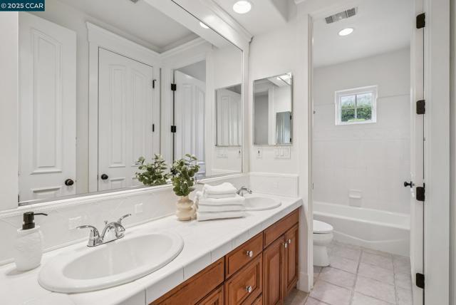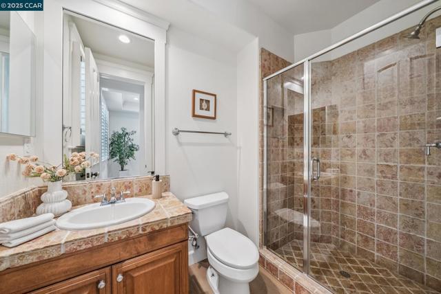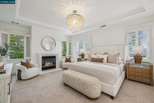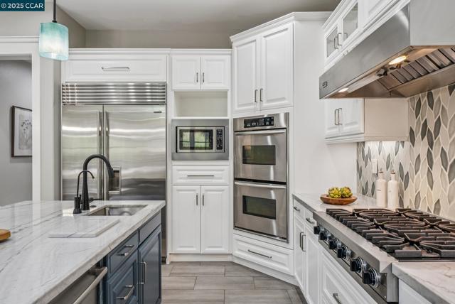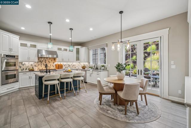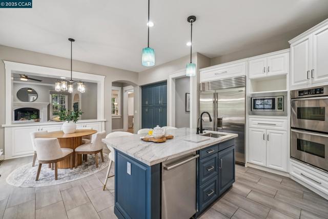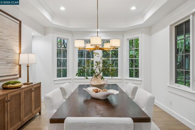 Nestled within the gated neighborhood of Diablo Ranch Estates, this stunning home offers privacy and luxury. Upgraded with rich hardwood flooring, freshly painted interiors, and custom designer light fixtures, the home exudes a modern, inviting elegance. The main level showcases a formal living room and an elegant formal dining room designed for entertaining. A private home office with an ensuite bath offers versatility—which can easily be converted into a true bedroom. The inviting family room features a built-in media center and the remodeled chef’s kitchen impresses with abundant custom cabinetry, tile flooring, and stylish backsplash. Additionally, this kitchen boasts premium stainless-steel appliances, including a Sub-Zero refrigerator, six-burner Viking cooktop, double ovens, and a dishwasher, as well as dual sinks with filtered instant-hot water feature for added convenience. Discover the primary bedroom suite upstairs, with a cozy fireplace and a remodeled ensuite bath. This spa-like bath highlights a walk-in shower with multiple shower heads, soaking tub, dual sinks and an oversized walk-in closet. The upper level is complete with 3 secondary bedrooms and an expansive bonus room with closet. Walking distance to the Athenian School & minutes away from Diablo Country Club.