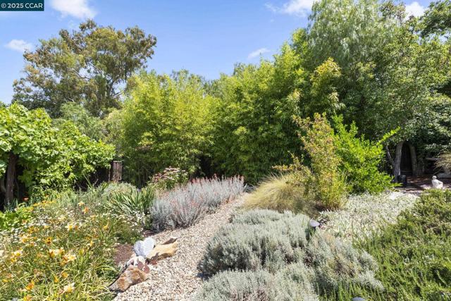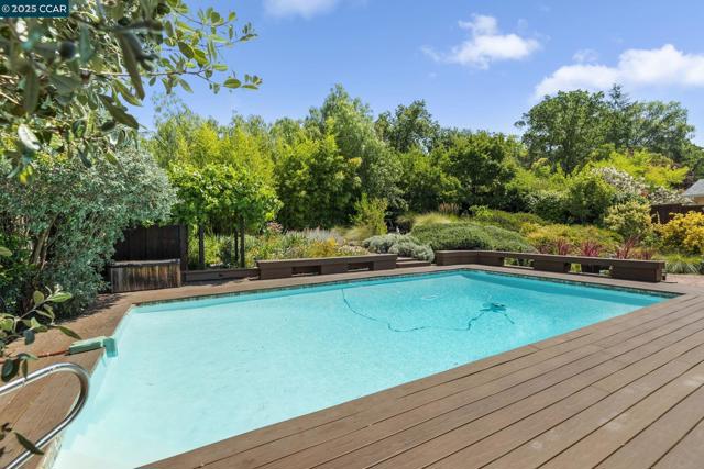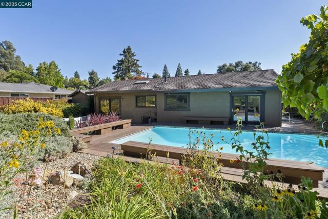 Welcome to this enchanting single-story residence, lovingly & meticulously maintained, now on the market for the first time in over 50 years. Experience lush, mature landscaping that only time can offer. Remember, "You can't buy time!" Offering a blend of classic charm & modern comforts, perfect for those seeking a peaceful retreat. Inviting foyer opens to a spacious living rm & dining rm with large picture windows showcasing the manicured garden. Kitchen with eat-in dining, granite counters, hardwood floors & sliding glass door has views to a stunning backyard oasis, pool & terrace with views. Primary suite has two closets w/ ample storage, bookcases & glass doors leading to a private patio, deck, spa & beautiful foliage for privacy. Two additional bedrooms, one with glass doors leading to the backyard, and two updated bathrooms. Spacious garden studio for all of your gardening tools or storage. Second shed for additional storage. 2-car garage w/ built-in cabinets. Situated on a generous & fully useable lot, this home is a gardener's paradise.Expansive grounds provide endless opportunities for creativity & relaxation. Sparkling pool, set amidst privacy and tranquility. Minutes away from award-winning schools, Downtown Danville shopping, restaurants & easy commute location.