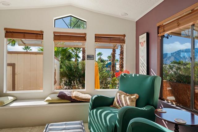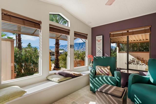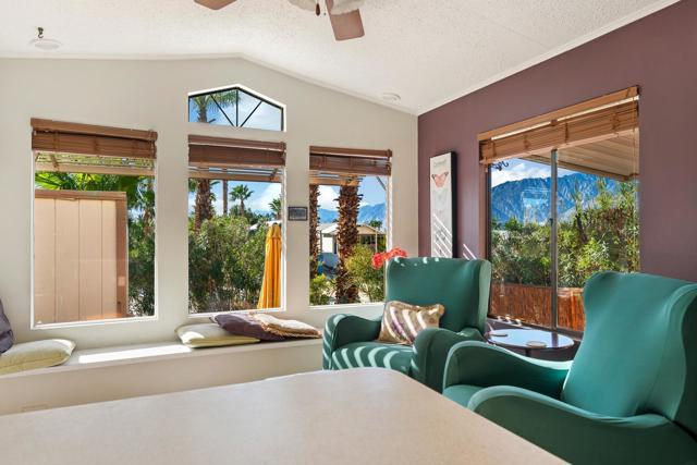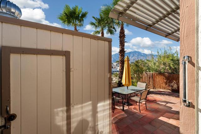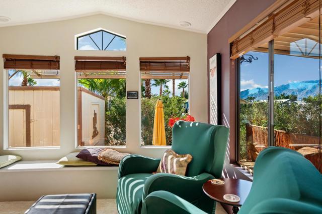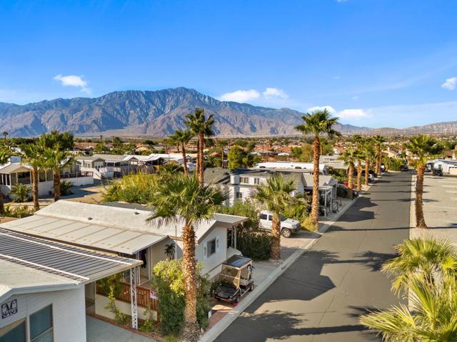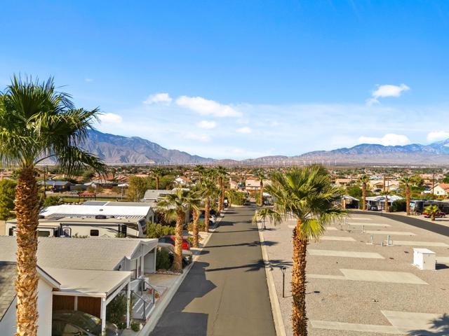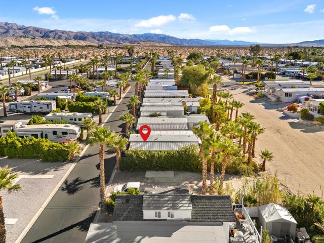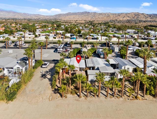 Exceptional 1-bed/1-bath seasonal or full-time retreat at The Sands RV & Golf Resort!Nestled in a quiet, well-maintained pocket of the community and backing onto a picturesque natural wash, this home offers a rare combination of privacy, convenience, and resort-style amenities. Mature palm trees frame your backyard, creating an inviting desert-oasis ambiance with stunning Mountain View's. The spacious, paved outdoor area features an easy-care sprinkler system on a timer and a delightful picnic/entertaining space--perfect for morning coffee or an evening under the stars.Inside, you'll find a thoughtful layout with excellent storage throughout. The kitchen boasts abundant cabinetry, a gas range and an over-the-range microwave--ideal for casual chef duties or entertaining guests. The bathroom features a walk-in shower (no tub) and built-in cabinets for linens and essentials. The living area is inviting, bright, and ready for seasonal or year-round comfort.A generously sized shed provides extra workspace or storage for golf gear, bikes, tools, or seasonal furnishings. This home is being sold furnished (minus personal items), making it truly move-in ready. The same owners have cared for it for approximately 13 years--used for seasonal enjoyment but meticulously maintained.Living at the Sands means more than just a home--it's a lifestyle. Golf lovers will appreciate the on-site 9-hole course, driving range and a putting/chipping green. Stay active with pickleball, a fitness room and the community's heated pool & two spas. The resort also offers activity rooms, a library, laundry facilities, dog parks and organized events--an engaging, friendly community that blends carefree living with comfort.Whether seeking a seasonal base, full-time desert retreat or rental-friendly investment, this home checks all the boxes. Low maintenance living, outdoor privacy, desert charm, resort amenities and mountain views--all located in a quiet, welcoming resort setting.Don't miss the opportunity to own a special place at the Sands RV & Golf Resort where every day feels like a getaway. Schedule your showing today and step into your sun-soaked, palm-fringed paradise
