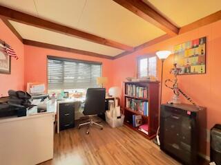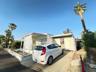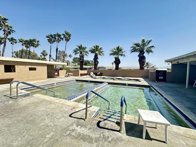 Step onto the front covered porch and into this Unique Mid-Century themed, updated home to find a welcoming array of warmth inside. To the right of the entry is the great room area combined with the kitchen that features a breakfast bar. This space is perfect for entertaining your family and friends. The built in hutch is between the dining area and kitchen and will provide storage for your treasures. To the left of the entry is an office and combo dining area featuring arched doorways, wood beam ceilings and a sky light. The main bedroom is spacious and has custom built in cabinets/closet space. The second bedroom has a separate sitting area to the right and there are two closets. The bath has a newer vanity, shower over bath and a barn door. Other features are laminate flooring throughout, recessed lighting, ceiling fans, and updated electrical. There is a washer/dryer located in the shed on the rear patio and two storage sheds behind the house. A workout area is behind the main bedroom. Healing Waters is a 55 plus mobile home park. Have a 'Day At The Spa' everyday when you live here. The amenities include the Clubhouse, Therapeutic Hot Mineral Waters in the pool and jacuzzi, tennis/pickleball courts and a park like setting for your enjoyment. The monthly rent for the new owner will be $695.00
