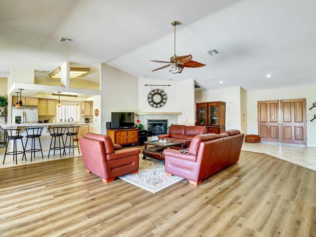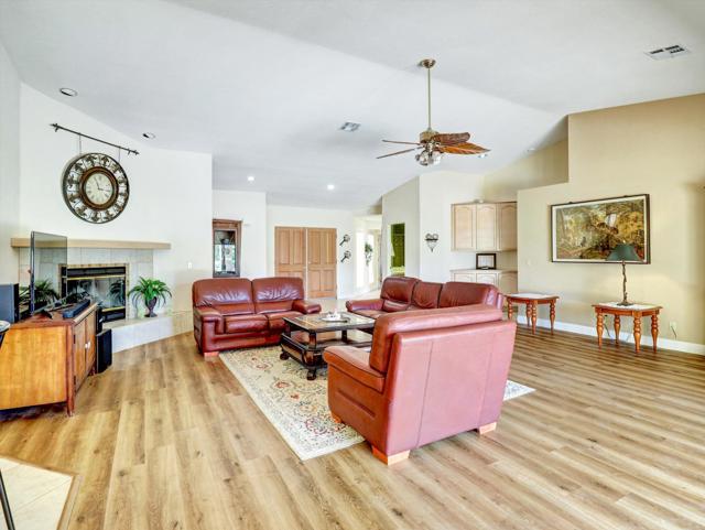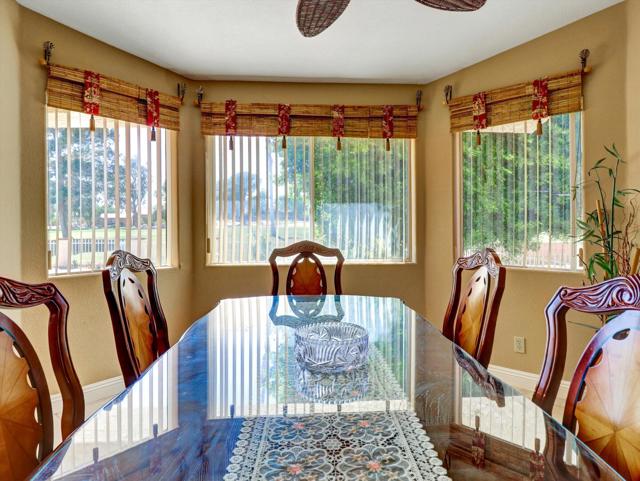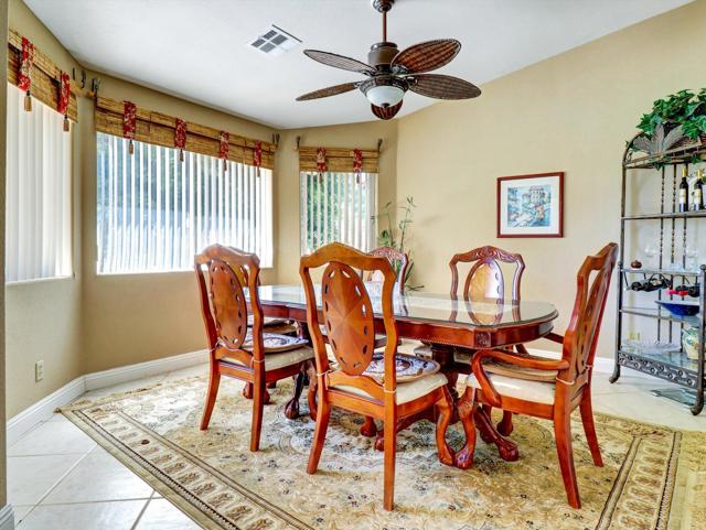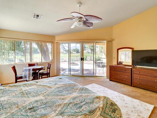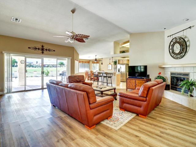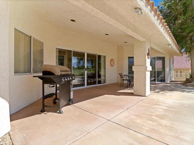 This home offers 2300 Sq feet of living space. Kitchen and living room are open and very spacious for entertaining! The home has three bedrooms two baths. The Master bedroom has slider that opens to the back yard patio. It also has large master bath with dual sinks and large walk in closet. The home sits on the 4th putting green with beautiful views of the mountains and nice large covered patio for company. Mission Lakes is a great community with an 18 hole Ted Robinson Championship golf course. Low HOAs of only 465 a month that includes unlimited golf for two on title. There is also a food minimum of 600 a year that is to be spent of food. Many more amenities include heated swimming pool. spas, tennis courts, fitness room, restaurant and sandwich shop!