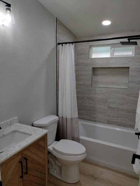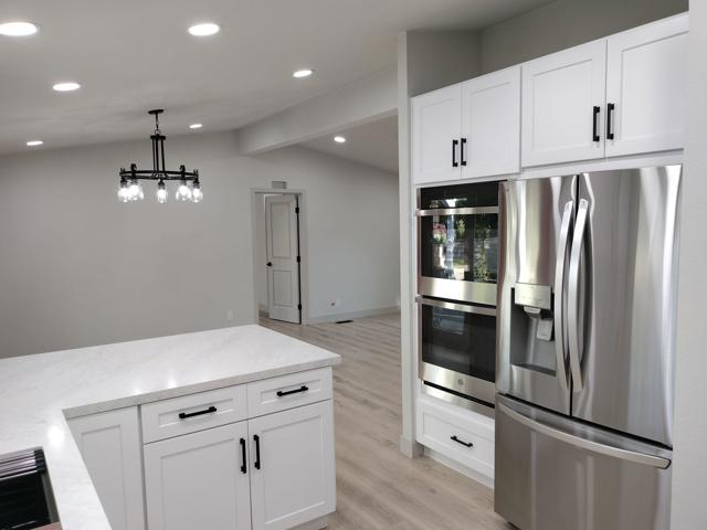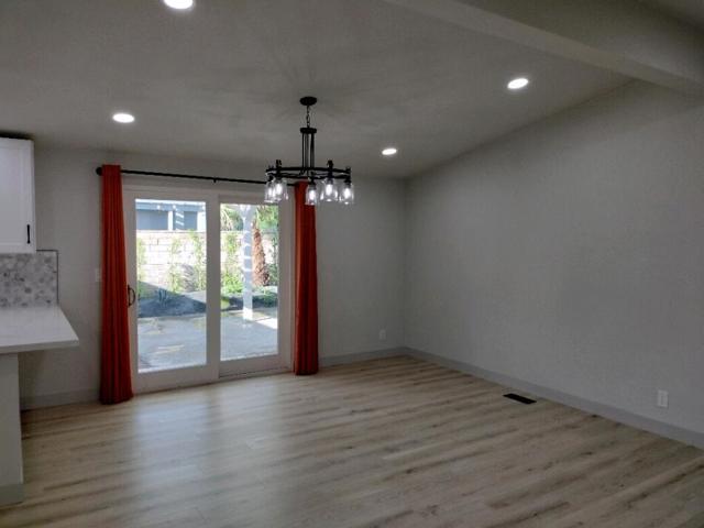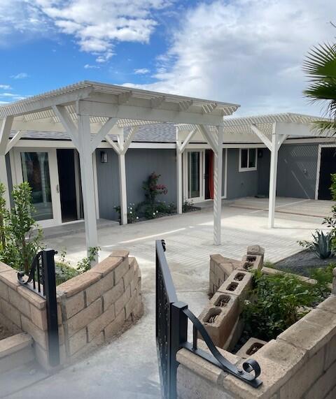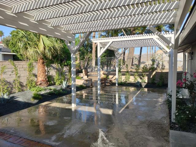 Totally remodeled from top to bottom beautiful 3-bedroom and 2 bath home in desirable Desert Willows community with beautiful grounds and amenities for a low HOA fee. This home is on a prime interior lot and location in the community with easy access to the beautiful clubhouse with wonderful amenities, pool, tennis courts and gardens. This home is located in the middle of the block and is a standout with the newly painted exterior and new coordinated drought tolerant landscape with all new timed irrigation. When you pull up to this property you will notice new windows and a new dimensional roof. The roof was a complete tear off and re-sheeting along with new fascia all the way around.The new front door and tiled exterior landing lead you into a bright newly remodeled entry, living and dining room space which is open concept to a stunning kitchen. From this space you are drawn to the outdoor patio and colorful lush landscape complete with 2 new custom pergolas. The backyard has a rear gate to the HOA amenities such as the clubhouse, pool, tennis courts and more. The HOA grounds are beautiful and meticulously maintained. There are vaulted ceilings, recessed lighting and remote-controlled ceiling fans throughout. This kitchen is above what anyone would expect. There are white full height shaker soft close cabinets, quartz countertops, marble backsplash, upgraded stainless LG appliance suite, double ovens with convection cooking and gas cooktop. The kitchen sink overlooks the patio and garden with easy access to the outside for BBQing and entertaining. This is a split floorplan with two generous sized bedrooms with ample closet space with mirrored doors and matte black accents. In the hallway to the guest bedrooms there is a laundry closet with a new full size LG washer and dryer and new cabinetry above. Also, there is a beautifully remodeled guest bath with custom tile, a tub/shower, new light wood vanity with matte black faucets and finishes.On the other end of the home there is a very large master suite with walk-in closet and attached remodeled spacious bath. This bath has a large double sink vanity with lots of storage and drawers, quartz counters, oversized custom tiled walk-in shower with custom glass enclosure, comfort height low flow toilets and matte black fixtures.Other improvements are waterproof flooring throughout, new electrical, new plumbing, new windows and sliders, cold AC, tankless H2O heater, attached 2 car garage and more!