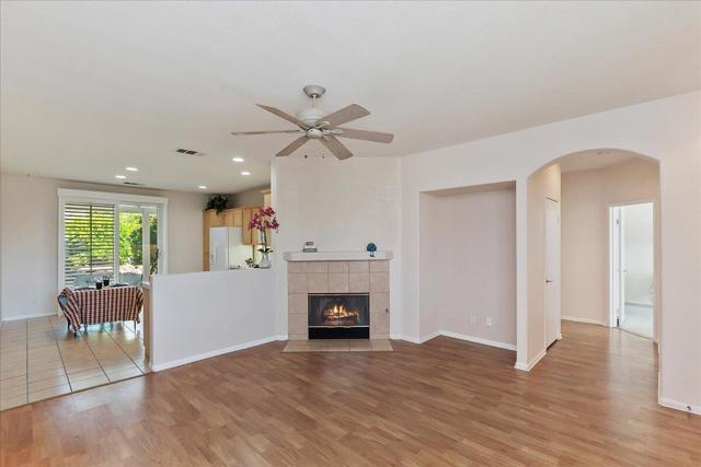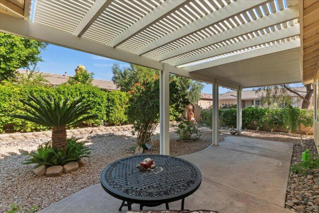 Desert Willows 55+ - Solar Home with Private Garden PatioWelcome to Desert Willows, a gated 55+ community where every day feels like vacation. This charming 2BD/2BA single-level home offers comfort, privacy, and low-maintenance desert living with owned solar for energy efficiency. The open-concept great room centers around a cozy gas fireplace, perfect for cool desert evenings. The bright kitchen features ample storage and opens to the dining nook and back patio for easy indoor-outdoor flow. The spacious primary suite includes a walk-in closet and ensuite bath with dual sinks and a walk-in hydrotherapy tub -- your personal spa retreat. Guests will appreciate their own full bath and private bedroom. Step outside to a covered patio surrounded by mature greenery and mountain views, ideal for morning coffee or quiet afternoons. Enjoy Desert Willows' resort-style amenities: heated pool and spa, clubhouse, fitness center, walking paths, and community events. Experience the best of desert living in a friendly, active community!