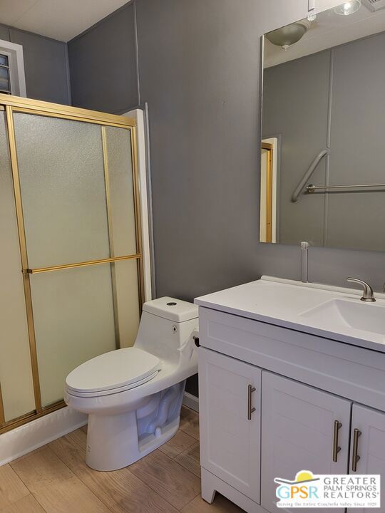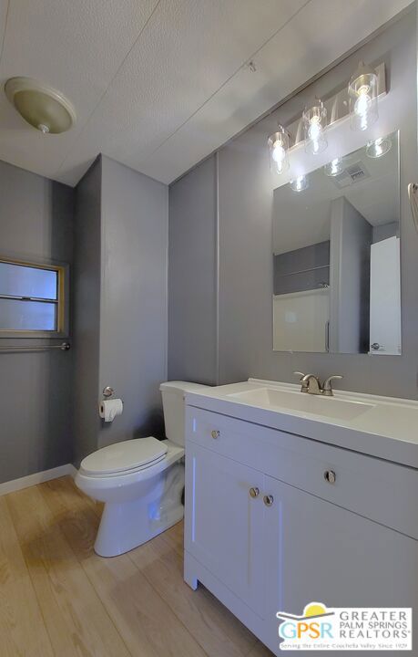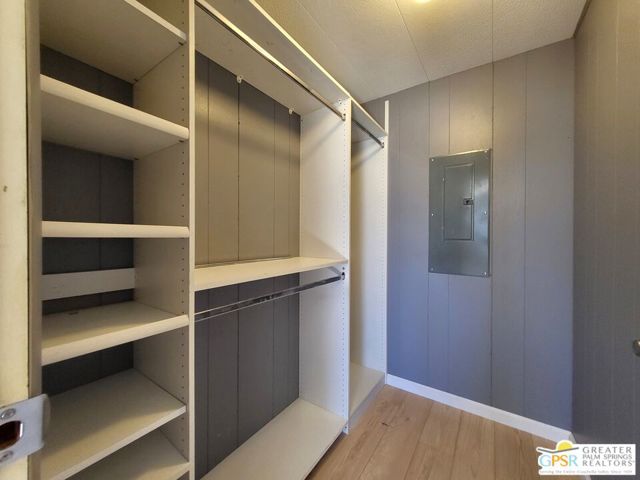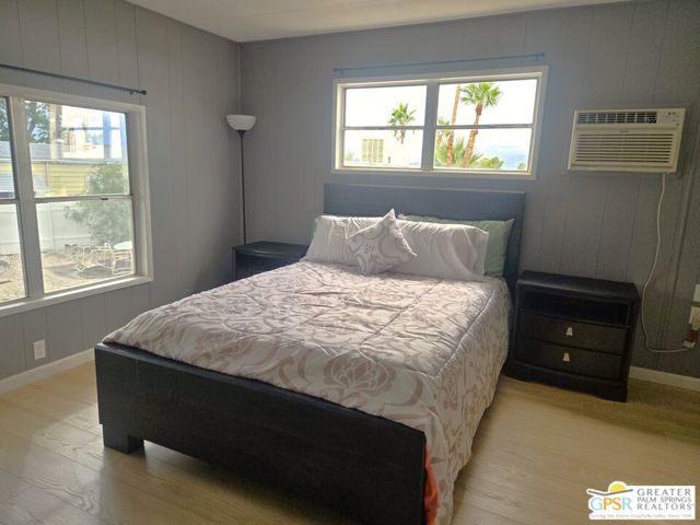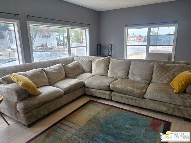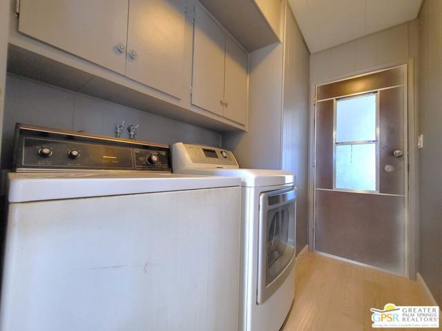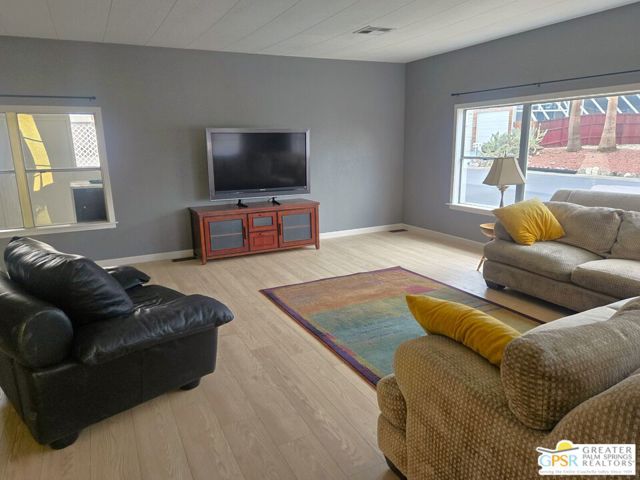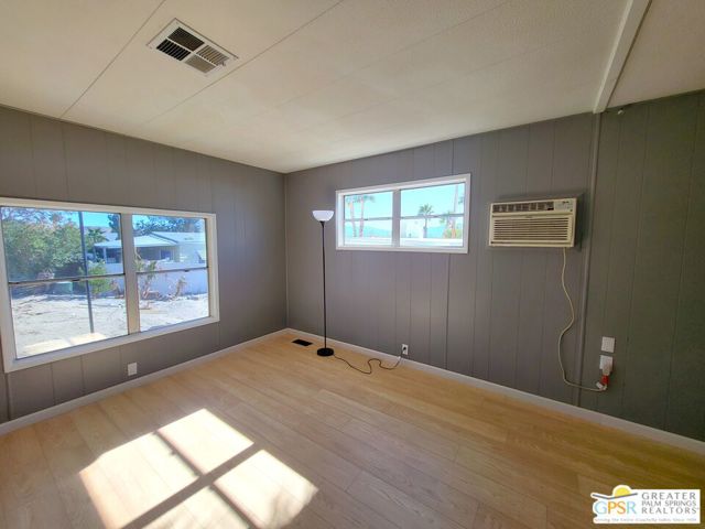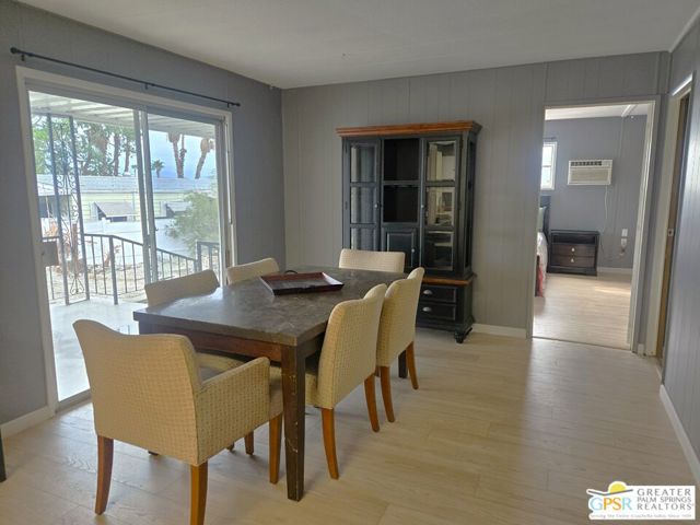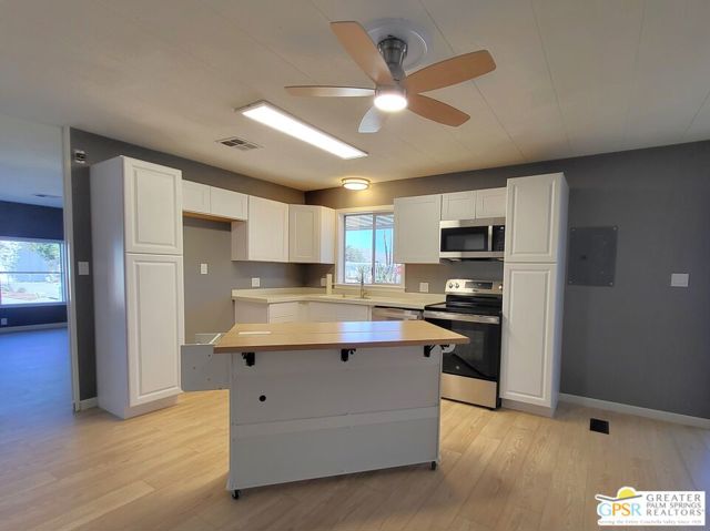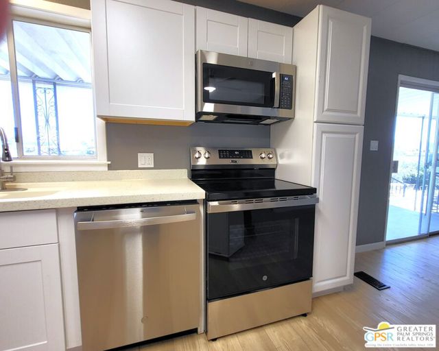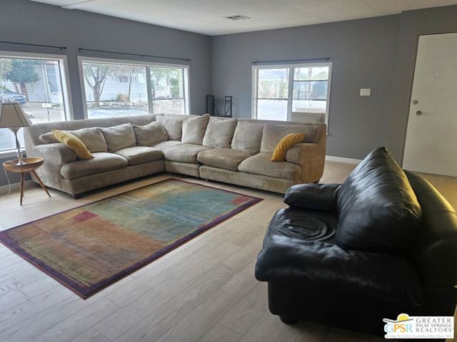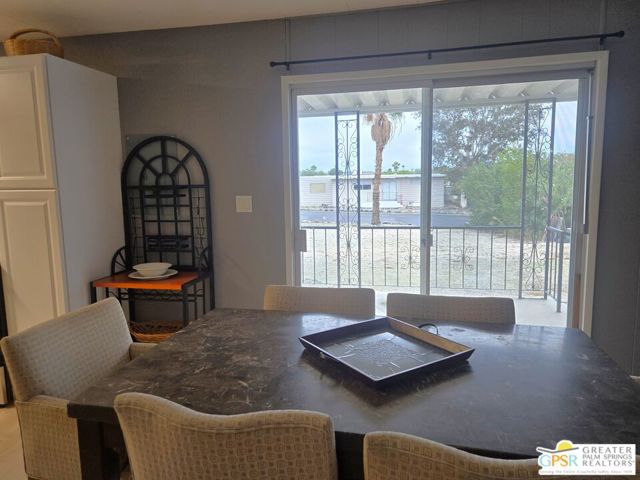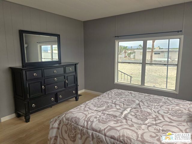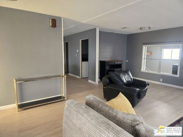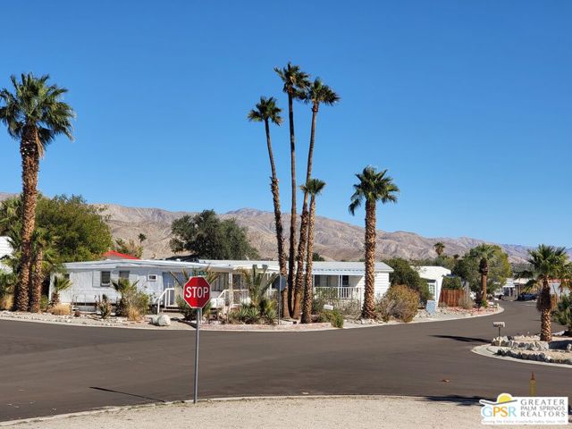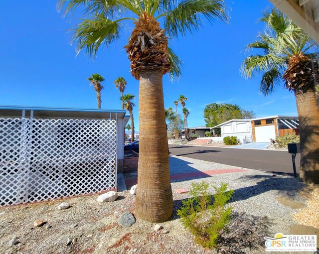 YOU OWN THE LAND!! and more of it than most, since this property occupies a larger than usual lot in the Active 55+ Community of Desert Crest Country Club. Seller has marked the approximate lot line so you can see the possibility of expanding the outdoor patio space or maybe adding additional parking for an RV. You enter the home from a large raised concrete patio that just calls out for a glass of wine and a cheese platter. What a place to entertain your friends! This home has been completely remodeled and features a brand-new Kitchen with new appliances. The high-end countertops even have a custom cut drain board next to the sink! You will love the bright and airy main Living Room which is combined with the Dining Area and Kitchen to have a Great Room feel, and please notice the new light wood flooring throughout. The Master Bedroom includes an ensuite Bath and walk-in closet, while the secondary bedroom features a jack-and-jill Bath that can also act as a Powder Room for guests. You are going to love the oversized garage with tandem parking for two and plenty of shop and storage space left over! Don't miss the large enclosed shop area at the back of the garage which gives you so much extra inside space. Desert Crest Country Club is a senior 55+ community with an array of exclusive amenities. Challenge friends to a round on the par-3 Golf Course or unwind in the Natural Mineral Spring Water Pool and Spas. There are several Shuffleboard courts that are covered, so you can play year-round. The community's commitment to a luxurious lifestyle is evident in every detail of the expansive Clubhouse. This home is more than just a place to live; it's a gateway to a lifestyle of peace, luxury, and contentment. Low HOA dues and YOU OWN THE LAND complete this residence into the ultimate package! Enjoy your new home today!