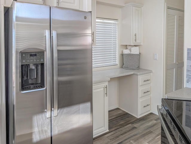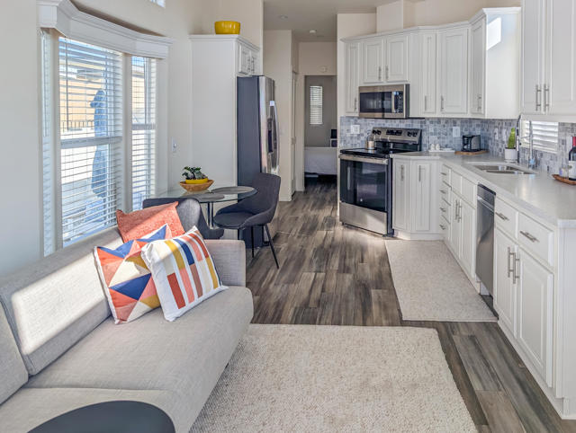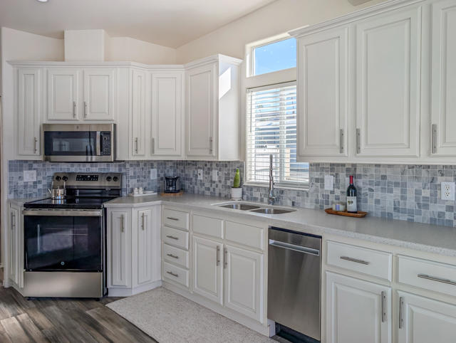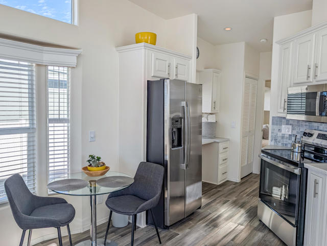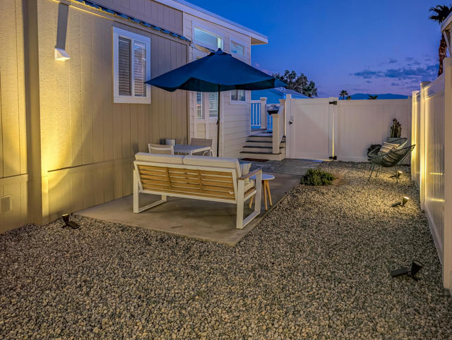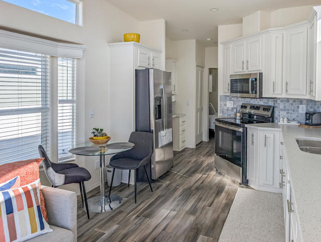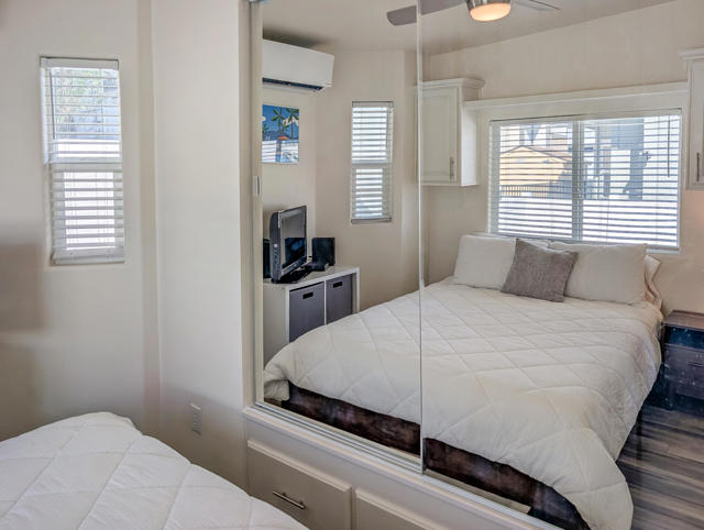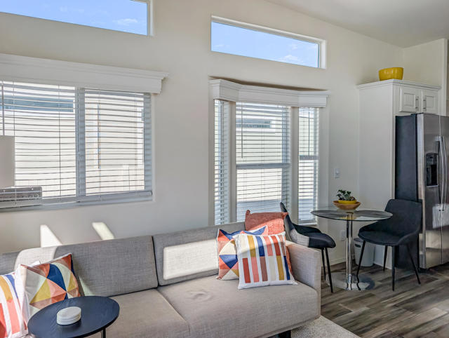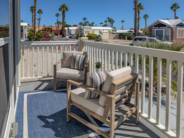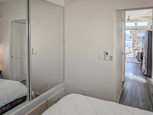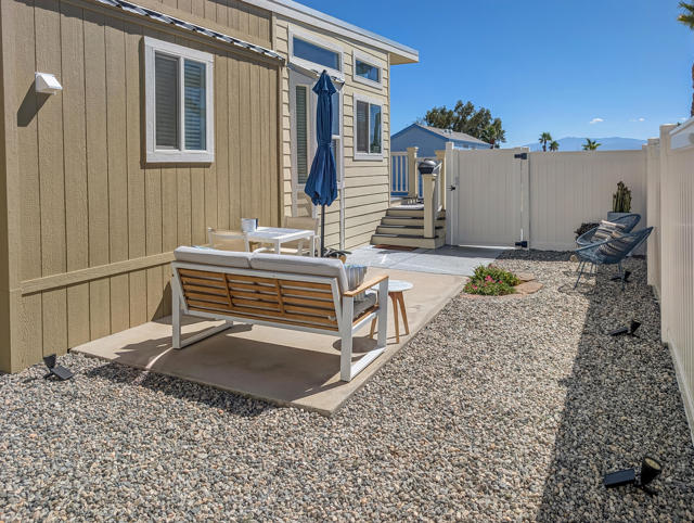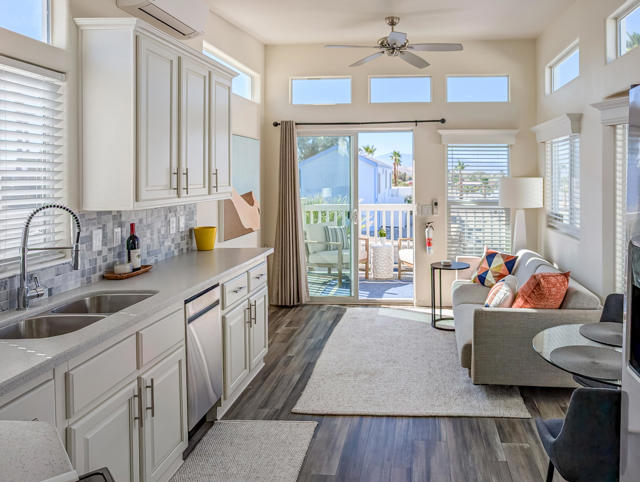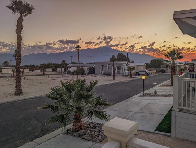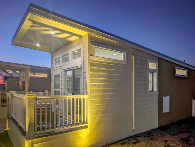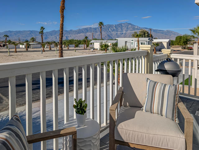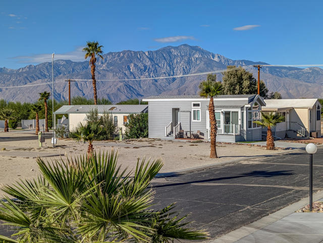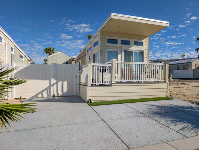 Stunning Turnkey Home at Caliente Springs Resort. This brand new, never-lived-in wedge home offers a truly turnkey experience that stands out as one of the most stunning residences in the park. Built in 2023, this home features one spacious bedroom and one modern bathroom. The residence is equipped with a washer and dryer hook-up, as well as unused, energy-efficient appliances, including a dishwasher. Hardwood floors extend throughout the home, complementing the Corian-style countertops and upgraded marble backsplashes. For enhanced comfort and energy savings, the home includes two ductless mini split systems. Natural light pours in through ample windows, while volume ceilings create a dynamic, open atmosphere. Enjoy the great front deck, which offers spectacular, unobstructed views of Mount San Jacinto and the surrounding regional hills. The private, peaceful backyard is fenced and ready for you to design your own desert retreat--perfect for entertaining guests or enjoying quiet serenity. Located close to the Clubhouse and centrally positioned to access all the amenities and activities at Caliente Springs, this pristine 55+ resort community ensures that you'll never want to leave. Whether you are seeking a perfect getaway home or a full-time residence, this property offers it all. Community amenities include a nine-hole golf course for year-round play, a healing mineral-fed hot spring pool and spas, and a variety of community-sponsored events throughout the season, all contributing to the pleasure of living in this exceptional place. Please note that the lot is not owned; space rent is $671 per month (subject to change). Easy lender financing is available on approved credit (OAC).