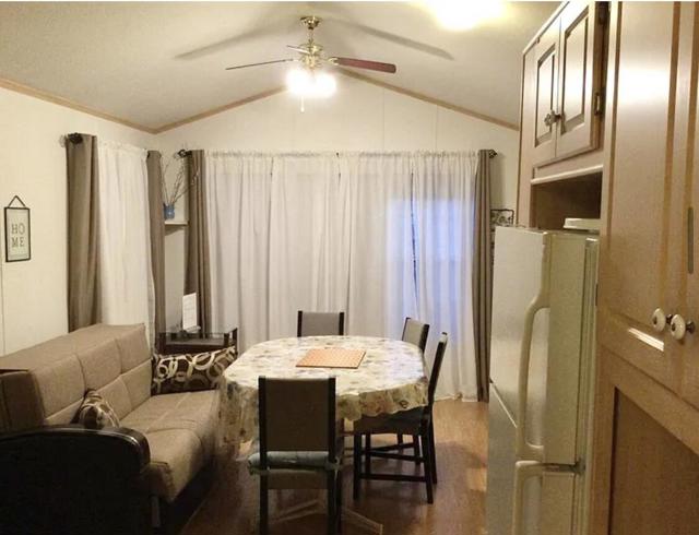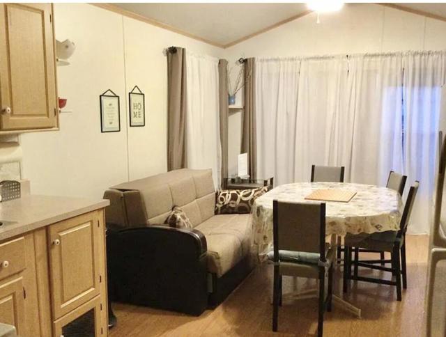 ALL AGED PARK!13 hot spring mineral pools, pickleball, tennis, various activities and events, cafe, chef who delivers dinners and so much more!RARE 2 bedroom park model with extra large California room, divided between living room and 2nd bedroom. Vaulted ceilings, large deck overlooking San Jacinto mountain and sunsets. Shed and fenced yard. LOWEST space rent tier! $644 per month.760-218-9974 for more info