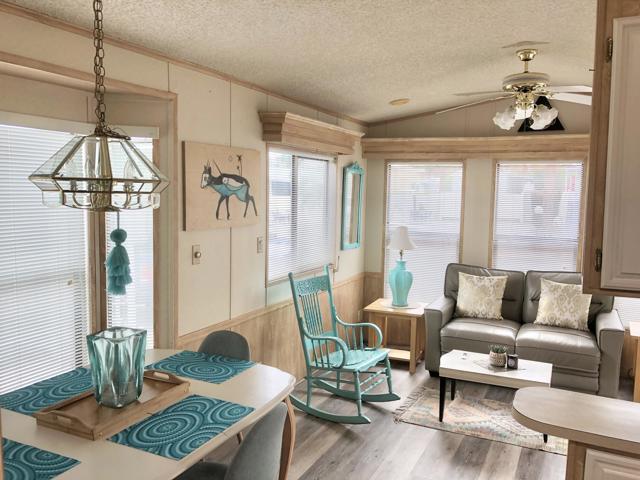LARGE FENCED YARD!New upgraded plumbing and LVP wide plank flooring!Nice wrap around deck with desert views!Furnished and stocked, this turnkey home is perfect for full time or seasonal living.Sky Valley Resort is an ALL AGED family park popular with full time residents and vacation homes. The resort features:13 sparkling hot spring mineral pools;pickleball, tennis, shuffleboard, horseshoes, gym, fitness center, walking trails;cafe and chef;peak season activities, classes, community events and MORE!