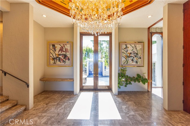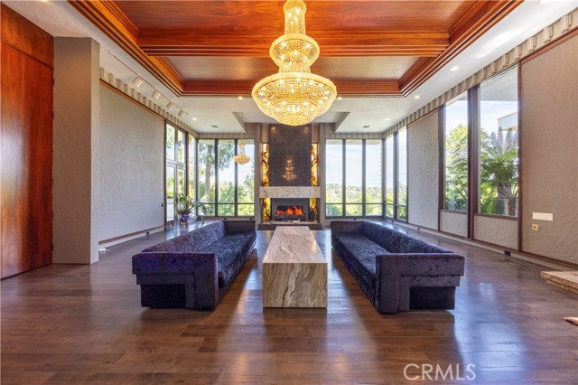 Welcome to 23615 Falcons View Drive — a truly exceptional estate located in the prestigious, guard-gated community of "The Country" in Diamond Bar. Set on nearly 2 acres of private, usable land, this one-of-a-kind custom home was thoughtfully designed to embody architectural artistry, intentional flow, and timeless sophistication. Spanning over 6,000 square feet, this estate blends artful design with elements of Frank Lloyd Wright’s organic architecture and strategic orientation. Subtle Feng Shui principles guided the original layout — promoting natural energy circulation, harmonious room placement, and a calming balance between openness and privacy. The 13-foot grand foyer immediately sets the tone, welcoming you with abundant natural light and striking symmetry. The layout is fluid, with wide hallways, and seamless transitions that create an effortless flow between living, entertaining, and retreat spaces. The home features 5 bedrooms and 7 bathrooms, including a private primary retreat with a spa-style bathroom, generous walk-in closets, a personal sauna, and a hot tub for the ultimate relaxation experience. A separate guest wing with its own maid’s kitchen provides ideal flexibility for long-term guests, multi-generational living, or staff quarters. At the heart of the home is a chef’s dream kitchen, thoughtfully designed with top-tier appliances, abundant prep space, and direct access to the main living and dining areas — perfect for entertaining or everyday culinary enjoyment. Additional highlights include a museum-style gallery wing, a dramatic sunken conversation lounge, a beautifully finished wine cellar, fitness room, and an oversized 6+ car garage that could serve as a showroom, studio, or creative space. Step outside to enjoy the best of Southern California living: a resort-style pool with integrated spa, poolside cabana, tennis court, and mature, professionally landscaped gardens designed for both beauty and privacy. Total property square footage adds to nearly 8,300 including the below grade wine cellar and art gallery museum/gym adjacent to the tennis court. 23615 Falcons View Drive is a rare offering — a home where architecture, energy, and lifestyle come together in perfect alignment. Shown by private appointment only.