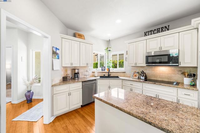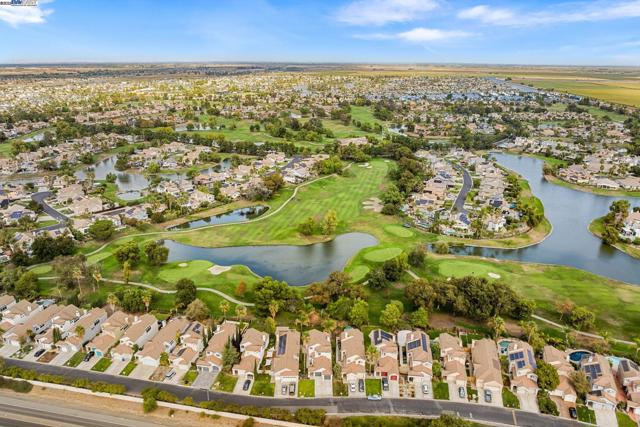 OPEN HOUSE Saturday 11/8 (from 12 noon-2pm)- No Rear Neighbors! Beautiful Golf Course Retreat in a Gated Community Welcome to this light-filled home located behind the gates of the Discovery Bay Country Club! Your rear neighbor is the serene golf course, offering peaceful views of green fairways and tranquil ponds. Step inside to soaring ceilings, fresh interior paint, and a spacious open layout perfect for entertaining. The huge kitchen is a chef’s delight, featuring generous granite counters, abundant cabinetry, and a large island that flows seamlessly into the family and dining areas. Enjoy year-round comfort with a newer HVAC system and newer water heater. Outside, unwind beneath the beautiful new pergola—the perfect spot to sip morning coffee while listening to the birds sing and taking in the fresh air. Your living space opens to the backyard for easy indoor-outdoor living, while upstairs is the Primary Suite and bedroom, which offer plenty of space. Bedroom and full bathroom downstairs offer a great guest room or home office. Additional highlights: two-car garage, low-maintenance landscaping, community security, and nearby golf, lakes, and walking paths. Come experience Discovery Bay living—where resort-style tranquility meets everyday comfort.