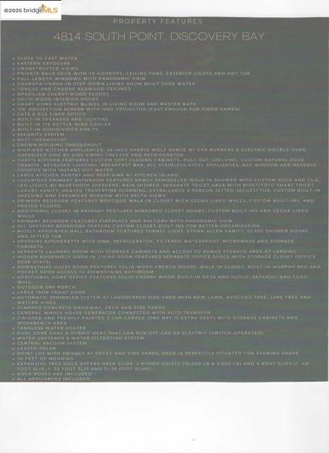 ONCE IN A LIFETIME OPPORTUNITY. Waterfront Luxury at its fullest. This house has all of the bells and whistles. Located minutes to FAST WATER part of Discovery Bay. Jump into your boat and sail away. Great for Water lovers and any one who wants to be apart of Discovery Bay Boating traditions. Golf club also within vicinity for the Golf lovers out there. Truly a great primary home or a great vacation home or a combination of the two. Enjoy a wonderful sunrises on the water without leaving your home of luxury. You can dock three boats at your very own pier. Also two Boat lifts to store your boat out of the water. Eastern exposure to enjoying the Delta. Hot Tub, Solar, heated floors, bidet, central vacuum, tank less water heater, Osmosis water filter, and much more. OPEN HOUSE SAT NOV 1st 2 pm TO 4:30 pm