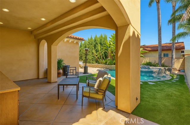 Two-story Mediterranean-style home located at 8531 10th Street, Downey, CA 90241. The property includes five bedrooms and six bathrooms with approximately 4,682 square feet of living space. Interior features include formal and informal living rooms, a large kitchen with center island, stainless steel appliances, and extensive counter space. The home includes high ceilings, decorative columns, and iron detailing. The main bedroom suite has a private bathroom and walk-in closet. Each additional bedroom includes access to its own or an adjacent bathroom. The rear yard features a swimming pool, spa, and multiple patio areas. A laundry room and attached three-car garage provide additional convenience. The property is located near shopping centers, restaurants, schools, and golf courses in the City of Downey.