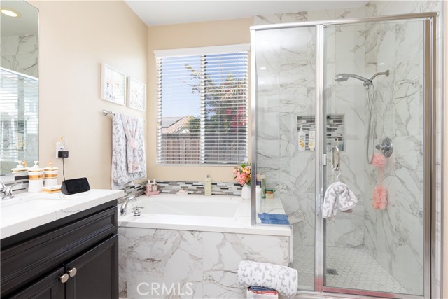 Welcome to your dream home in Eastvale! Nestled on a quiet cul-de-sac in a beautifully maintained suburban neighborhood, this remodeled 4-bedroom, 2-bath residence offers the perfect blend of comfort, style, and functionality. Step inside to find an open, light-filled floor plan with new hardwood floors. The heart of the home is the stunning kitchen featuring a large island, new countertops, and modern cabinetry—ideal for gatherings and entertaining. The spacious primary suite boasts a luxurious bathroom with dual sinks, soaking tub, and walk-in closet, creating your own private retreat. Additional highlights include a 3-car garage with ample storage space, tile roof, and updated backyard with fresh cement slabs and a new patio cover, perfect for relaxing or hosting friends. Located near restaurants and shops, and excellent rated schools. This move-in ready home has been thoughtfully upgraded inside and out, offering a wonderful opportunity for its next family. Don’t miss your chance to own this gem in Eastvale!