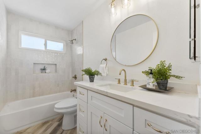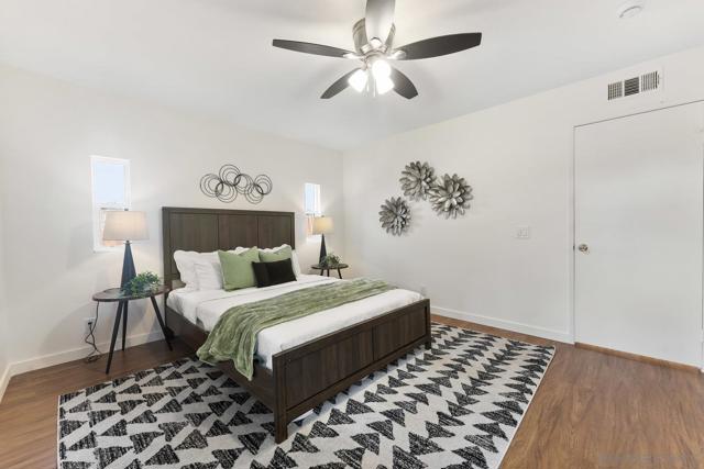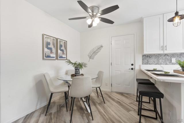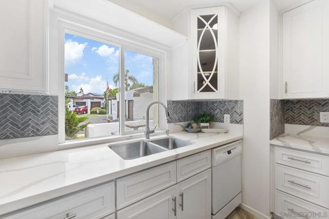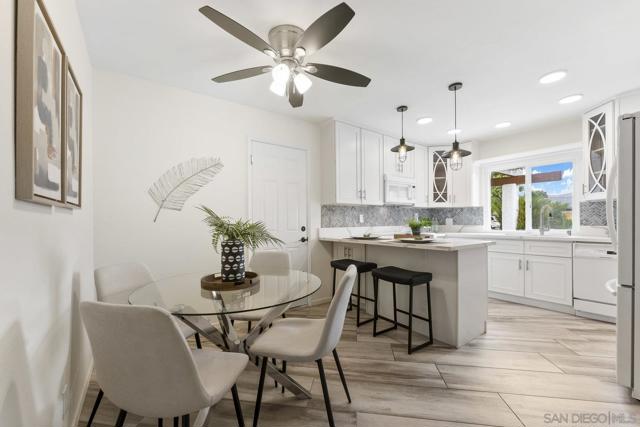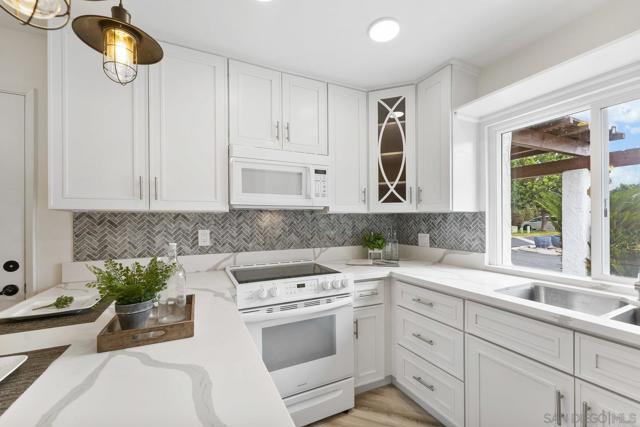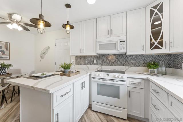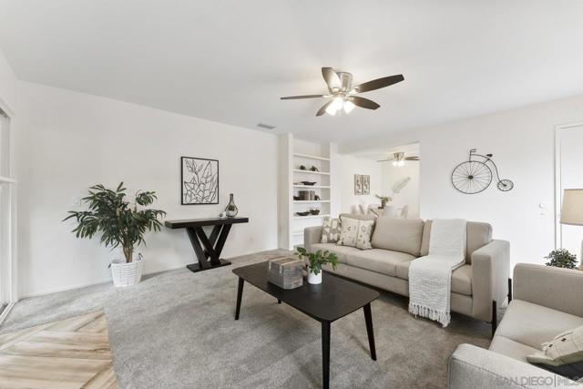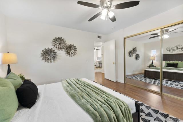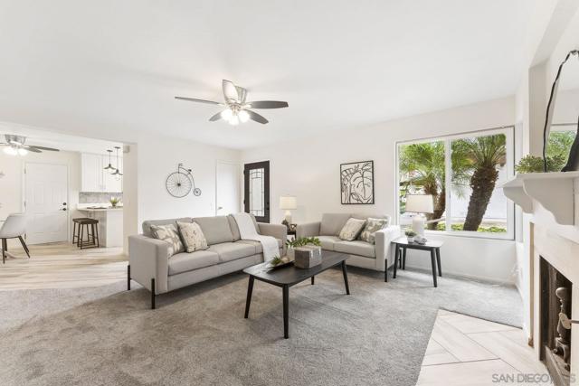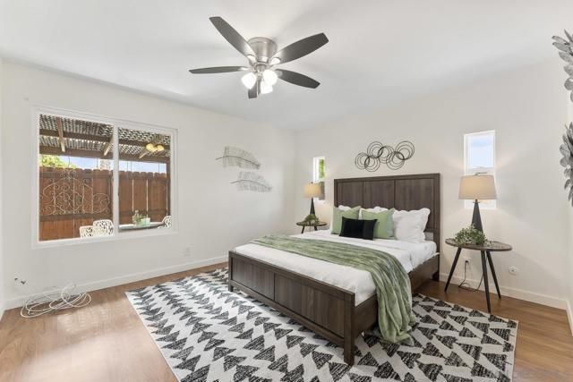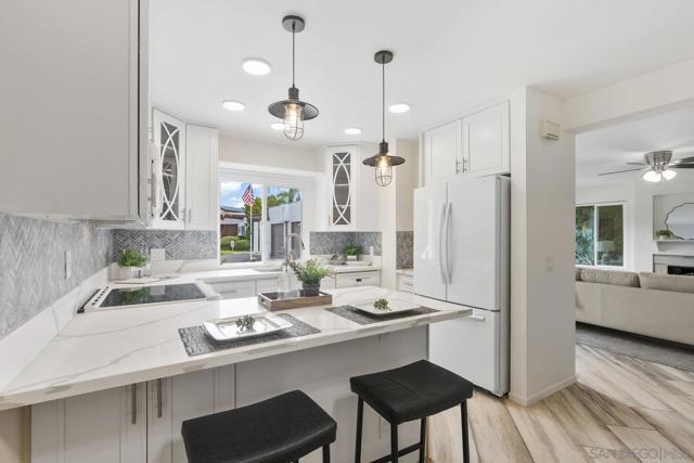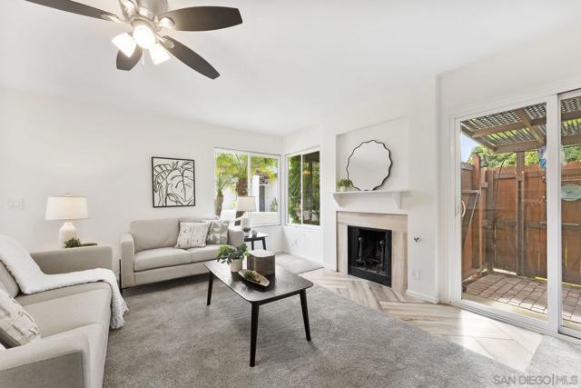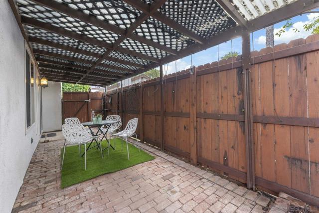 Move-In Ready Home in a Sought-after Single-Story Community! Welcome to Bostonia Gardens, a beautifully landscaped and peaceful enclave of just ten single-story homes. This charming and meticulously maintained residence blends comfort, style, and convenience in one inviting package. Step into a bright and open living area featuring luxury vinyl plank flooring, recessed lighting, and a large window with serene views of the community greenery. The spacious kitchen impresses with extended quartz countertops that double as a dining bar, matching white appliances (including refrigerator, electric stove, microwave, and dishwasher), a double sink, and tranquil views. The freshly renovated bathroom showcases stylish tile finishes, quartz counters, and a modern vanity. Enjoy seamless indoor-outdoor living with a large wraparound private patio, perfect for relaxing, gardening, or entertaining. A dedicated garden area and oversized exterior storage closet add to the home’s functionality. Additional highlights include dual-pane windows, newer A/C and water heater, and an attached one-car garage with built-in storage. Ideally located on a quiet cul-de-sac street, just minutes from the freeway, shopping, and restaurants, offering the best of convenience and comfort in a private gated setting.