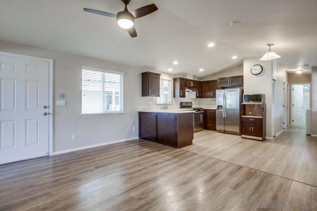 Welcome to Pepper Villa Estates, one of San Diego's most desirable and meticulously maintained communities. This peaceful, family-friendly, and secure neighborhood is known for its immaculate grounds, caring residents, and strong pride of ownership throughout. Residents enjoy a variety of amenities, including a clubhouse with a full kitchen, a well-equipped exercise room, pool table, sparkling swimming pool, relaxing jacuzzi, BBQ area, and inviting community gathering spaces. Step inside this spacious, move-in-ready home, featuring luxury professional vinyl flooring, state-of-the-art appliances, and a bright, open layout perfect for modern living. With three bedrooms and two full bathrooms, there’s plenty of room for everyone. The primary retreat offers a large walk-in closet and a beautifully appointed ensuite bathroom. Behind the home an occasional seasonal creek gently flows, offering peaceful sounds of running water and the rare bonus of no rear neighbors, enhancing your sense of privacy. The back bedroom even features serene views of the trees and creek. The private yard is ideal for children at play, gardening, entertaining guests, or simply enjoying the outdoors. Don’t miss your opportunity to own a slice of San Diego in this highly sought-after community, homes in Pepper Villa Estates rarely stay on the market for long. Come see it before it’s gone!