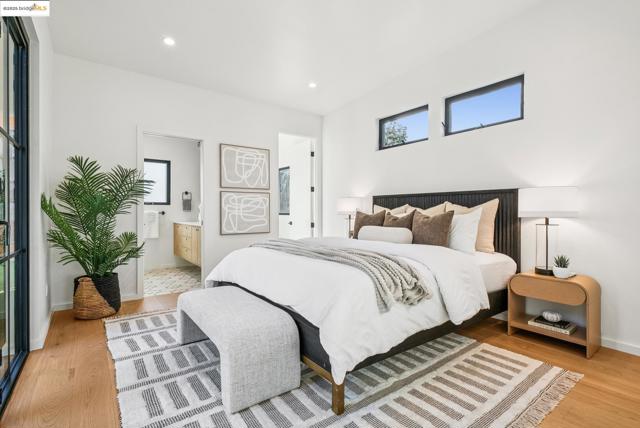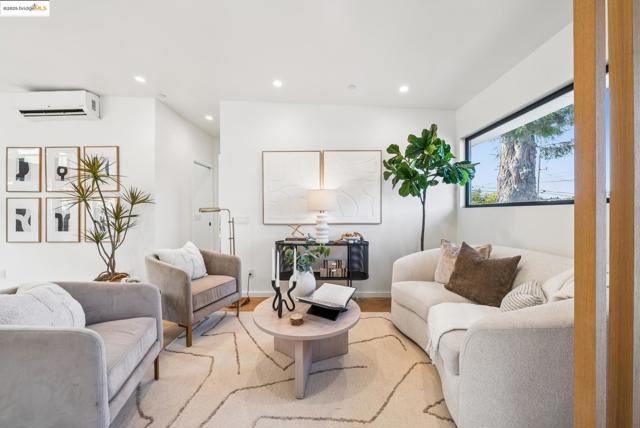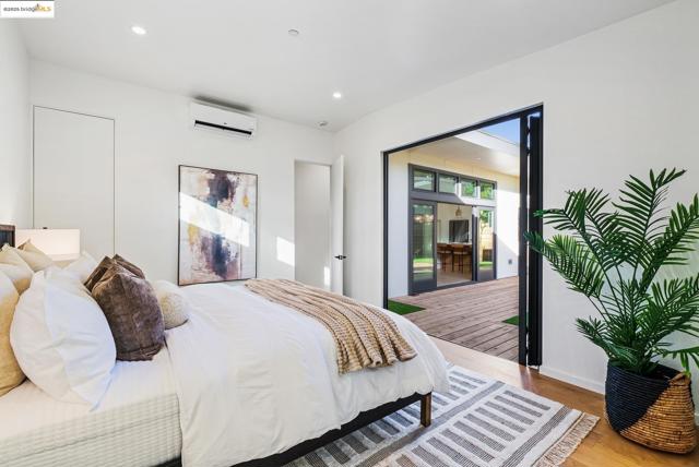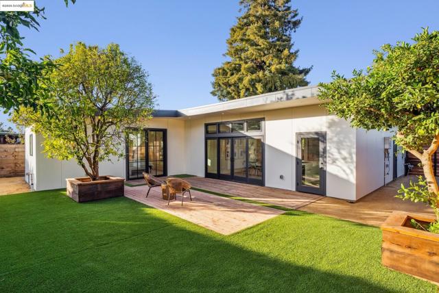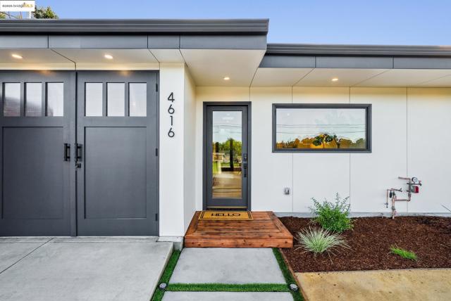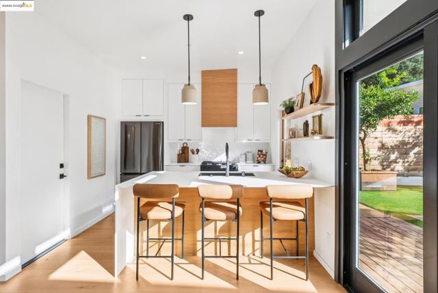 Stunning new construction home with countless thoughtful details and spectacular modern design. High ceilings, skylights, beautiful light, white oak floors, artful tile choices, custom woodwork throughout, including kitchen and bathroom cabinetry, expansive backyard with redwood decking and easy-care turf, mature trees, built-in seating and terraced planter beds. The primary suite features a NanaWall door that opens onto the yard and deck. Attached garage (+207sf) with internal access and single level living make this a perfect home for all ages. Energy efficient features include mini split AC/heat, tankless water heater, LED lighting, dual pane windows, closed-cell ceiling insulation, TPO 30 year cool roof, fully insulated walls, 200 amp electrical with new meter, Smart Home system, fire sprinkler system and water-saving plumbing fixtures. This is a dream home presented by master builder Anderson Moraes, known for high quality work built for generations of enjoyment. Convenient El Sobrante location close to schools, trails, shopping and transportation routes.
