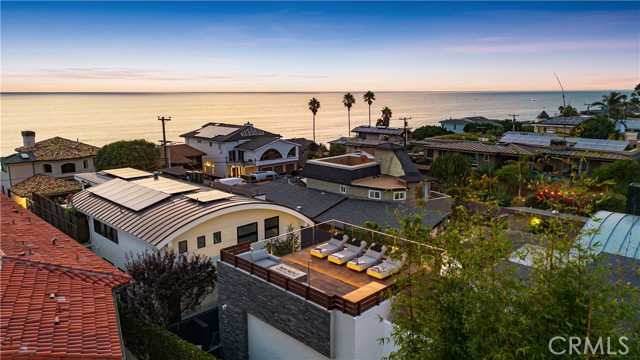 Positioned along one of Encinitas’ most sought-after coastal streets, this modern residence blends striking architecture with the relaxed elegance of beachside living. Bathed in natural light and just moments from some of North County’s most iconic beaches, the home offers a lifestyle that is both vibrant and serene. A distinctive curved roofline, bold architectural lines, and expansive windows define the design, creating interiors that feel airy and connected to their surroundings. The expansive rooftop deck serves as a true highlight, perfect for entertaining or unwinding complete with lounge seating, a fire feature, and a private sauna that transforms the space into a retreat-like escape. Inside, an open-concept layout seamlessly connects the main living spaces, anchored by a chef’s kitchen appointed with refined finishes. Multiple balconies and thoughtfully designed outdoor areas enhance the indoor/outdoor connection. A spacious garage featuring a motorized lift door, complemented by an estimated 500 square feet of subterranean space that can be transformed into a movie theater, gym, yoga room, or any other creative use you envision. Lush landscaping provide privacy while keeping local beaches, dining, and the boutiques of downtown Encinitas within easy reach. Set along Neptune Avenue, this residence captures the essence of modern coastal luxury in one of Southern California’s most desirable locations.