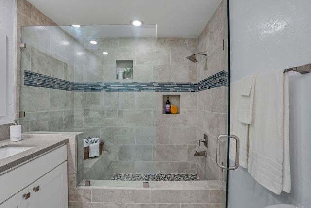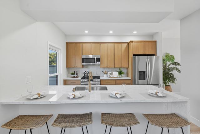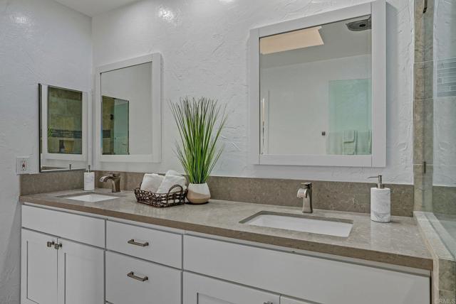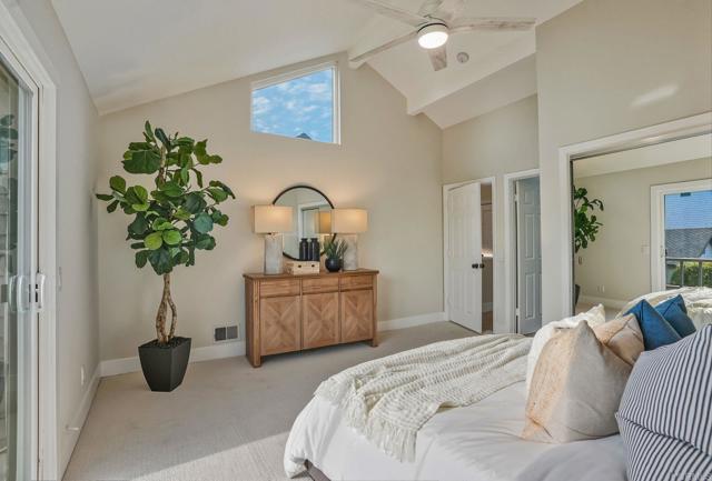 Live the coastal lifestyle just one block from Grandview Beach in this updated 2 bed, 2 bath, 1,528 sq ft townhome located west of Hwy 101 in Leucadia. Set within an intimate 6-residence community, the home offers soaring ceilings, abundant natural light, and multiple skylights, sliders, and windows for bright, airy beach living. The remodeled kitchen and updated bathrooms showcase modern finishes and vaulted ceilings, while dual primary suites each open to private balconies for indoor-outdoor flow. An exclusive front patio, three balconies, inside laundry, bonus storage/utility room, and a two-car garage add convenience. Walk to local cafés, shops, and restaurants while enjoying low-maintenance living in one of Encinitas’ most coveted coastal neighborhoods.