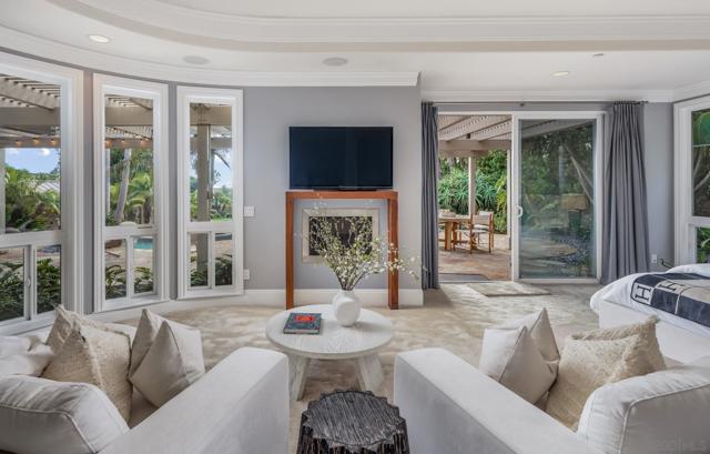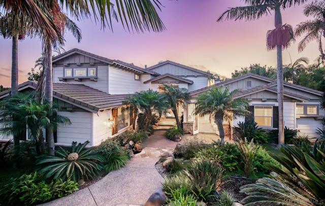Set at the end of a quiet cul-de-sac, this gated one-acre Encinitas estate offers over 5,700 sq. ft. of refined living space, plus a private guest house and pool house. Enjoy sweeping ocean and sunset views, expansive lawns, and a resort-style pool with waterfalls, spa, and plunge area. An inviting setting designed for meaningful moments and core memories. Inside, the home features wide-plank oak flooring, tray ceilings, a light-filled formal living/dining area, and a spacious family room with fireplace. The gourmet kitchen includes Viking appliances, Sub-Zero fridge, Waterworks fixtures, marble countertops, and a walnut prep island. Six ensuite bedrooms include a main-level primary suite with fireplace, patio access, and spa-like bath. The guest house offers a full kitchen and bath for flexible living. Outdoor amenities include a heated pergola, built-in BBQ, bar, and multiple spaces for relaxing and entertaining. Smart home features, CAT 5 wiring, and whole-home audio complete this exceptional coastal property.