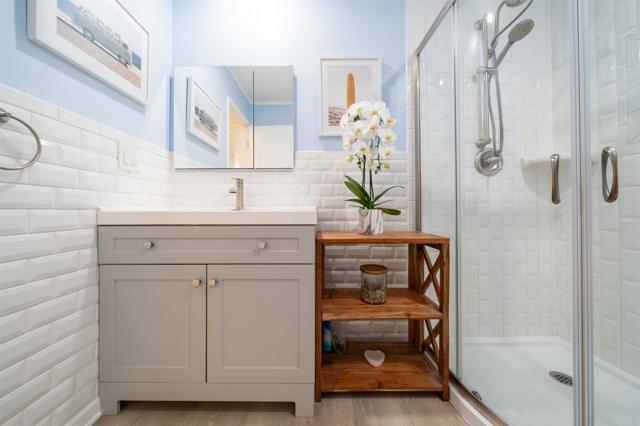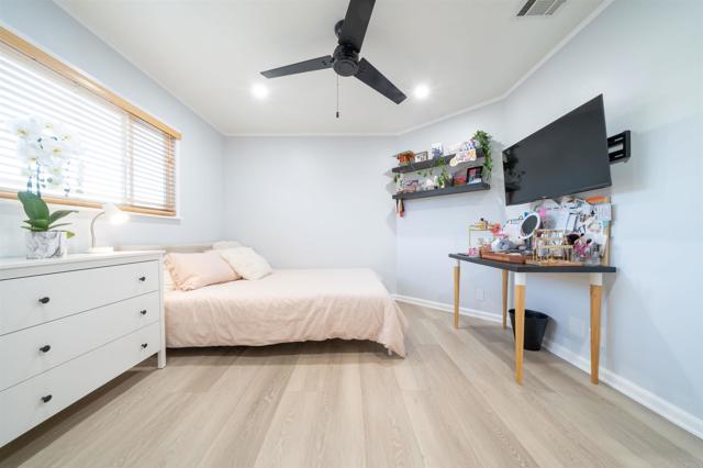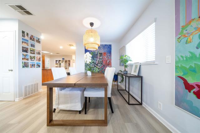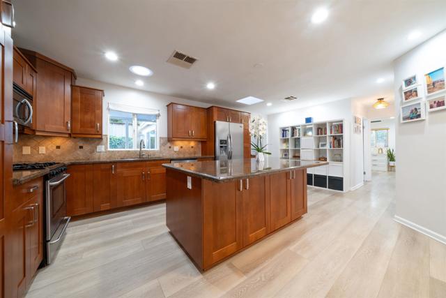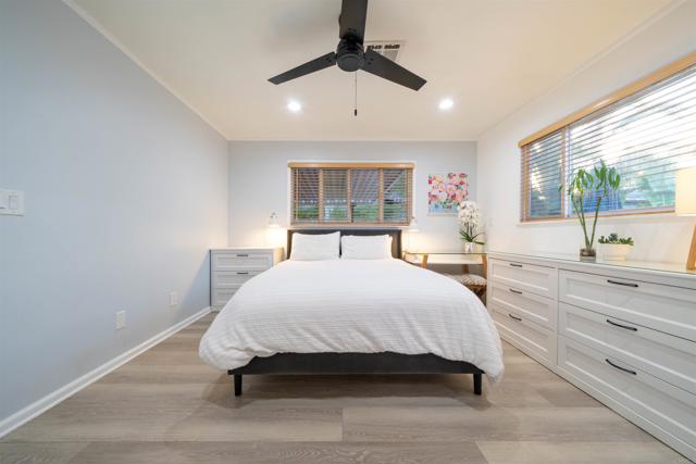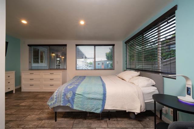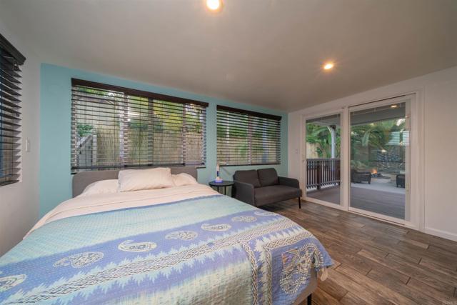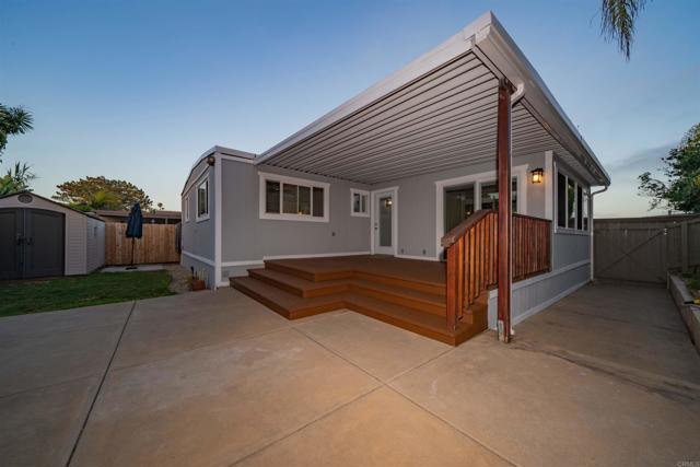 Coastal Living at Its Finest in Leucadia This beautifully remodeled single-level beach home sits on a corner lot that feels private and secluded, surrounded by mature trees and lush coastal landscaping. The property boasts the largest backyard in the community—a true outdoor retreat perfect for entertaining or relaxing in style. Enjoy a built-in gas fire pit, custom BBQ area, and landscaping with a sprinkler system. Step inside and experience bright, open living spaces filled with natural light and laid-back coastal charm. The open-concept floor plan connects the living, dining, and kitchen areas—ideal for gatherings and everyday comfort. The gourmet kitchen features granite countertops, ample cabinetry, and a large island with seating for five. Recent upgrades include custom vinyl plank flooring (2022), new insulated metal roof (2022), new furnace (2023), fresh interior and exterior paint (2024), and LED lighting with ceiling fans throughout. The home also includes a separate 30-amp circuit for EV charging. This 1,680 sq. ft. home offers 2 bedrooms, 2 bathrooms, plus a spacious bonus room with a large closet and four oversized windows that fill the space with natural light—perfect as a home office, studio, or third large bedroom. Sliding doors open to the deck and expansive backyard, creating a seamless indoor-outdoor living experience. The primary suite is a peaceful retreat with a soaking tub, separate shower, dual sinks, and custom tile finishes. The second bath features modern tilework, a circular shower, and stylish fixtures. Located just steps from Beacon’s Beach and moments from Leucadia’s top restaurants, boutiques, and nightlife, this home embodies the Encinitas coastal lifestyle with every modern convenience in place. Space rent: $2,831/month — seller will cover the first 3 months of the land lease at closing, making this an even more attractive opportunity to own in Leucadia!