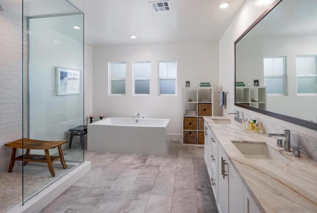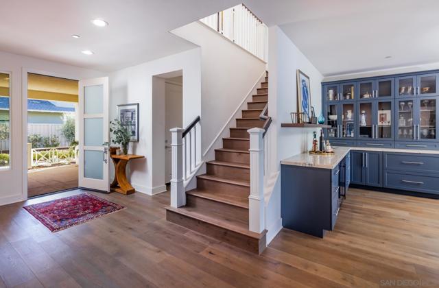 Discover modern luxury in this exquisite 2020 Shea Homes residence, nestled in the prestigious Alia community at the end of a private cul-de-sac. This 5-bedroom, 4.5-bathroom masterpiece seamlessly blends contemporary design with coastal charm, featuring expansive bi-folding doors that open to a private oasis complete with a low maintenance landscape, pool, spa, water features and custom putting green. The gourmet kitchen shines with the GE Monogram Statement Collection and a striking Calacatta Gold Silestone Quartz island, while the primary suite offers a private balcony and a spa-inspired ensuite with custom Jeffrey Court tile. Designed for both intimate living and grand entertaining, the home includes a main-level bedroom suite, a great room with built-in surround sound, custom cabinetry, and energy-efficient owned solar panels. Just a mile from Leucadia beaches and coastal dining, and close to Fox Point Farms and Encinitas Ranch Golf Course, it offers easy freeway access and proximity to top-rated San Dieguito schools. This is your opportunity to own a turnkey luxury retreat in one of North County's most sought-after communities. ***