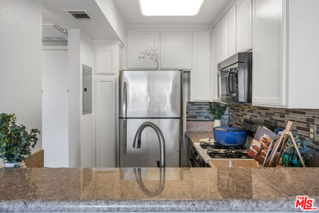 Penthouse Newly Renovated Luxury Studio with Balcony and Unobstructed Sunset Views in Elegant Encino. Welcome to a new level of elevated living in the heart of Encino. This Top-Floor Private Studio Sanctuary is nestled within an exclusive resort-style enclave. Minutes from the 101 and 405 freeways, and a leisurely stroll to the chic cafes, boutiques, and Nightlife of Ventura Boulevard. Step inside and feel instantly at home in this sun-drenched, move-in-ready retreat, where comfort meets modern elegance. Designer kitchen with Sand Colored Cabinets , gleaming Granite countertops, with Custom Backsplash, and a sleek Breakfast Bar fully equipped with appliances including Stainless Steel Refrigerator, Gas Stove, Microwave. Soaring vaulted Ceilings and expansive Windows bathe the space in natural light, creating a sense of effortless airiness .Rich laminate floors add warmth and sophistication throughout .Your own private Balcony, perfect for morning Espresso or Sunset Wine, complete with an additional storage closet. The Resort-like amenities extend your living experience well beyond your front Door. A sparkling Pool surrounded by lush landscaping your personal oasis A pristine, well-equipped Fitness Center Recreation Lounge with Pool Table and Foosball, ideal for entertaining or unwinding Outdoor BBQ area, Laundry Facilities, and Trash Chutes on every floor for seamless convenience 1 reserved covered parking space in a secure, well-maintained community . Manicured pathways perfect for peaceful strolls or afternoon escapes. Located just minutes from serene parks, the Orange Metro Line, and within walking distance to Trader Joe's, Ralphs, restaurants, and designer shopping this is more than a home, it's a lifestyle designed to indulge.Whether you're seeking a chic pied-terre or a stylish everyday escape, this top-floor jewel is your key to Encino luxury living. Welcome Home!