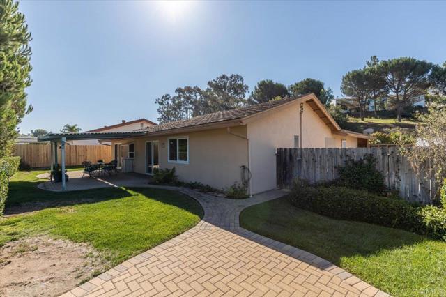 WELCOME TO THIS BEAUTIFULLY UPGRADED SINGLE-STORY GEM IN SOUGHT-AFTER NORTH ESCONDIDO! TUCKED AWAY ON A QUIET, LOW-TRAFFIC STREET, THIS TURNKEY HOME SHOWCASES OVER $180,000 IN THOUGHTFUL IMPROVEMENTS AND OFFERS THE FREEDOM OF NO HOA! Step inside to find a bright, move-in ready layout featuring fresh interior paint (2025), new luxury vinyl plank flooring throughout (except baths), and smooth ceilings. The remodeled primary suite (2020) boasts a walk-in closet and updated bathroom, while the kitchen (2009), hall bath (2007), laundry room, and interior doors have all been stylishly upgraded. Comfort meets efficiency with dual-pane windows, central heat/AC, attic insulation, an upgraded 125-amp panel, rewired copper outlets/switches, and additional system enhancements for peace of mind. Outside, enjoy low-maintenance living with water-saving landscaping, flagstone walkways, decorative pavers, and multiple patios. The private backyard offers hillside views, while a gated, paved side area provides RV parking or extra storage—complemented by updated fencing (2019 & 2025). A TRUE TURNKEY OPPORTUNITY WITH NO HOA IN ONE OF ESCONDIDO’S MOST DESIRABLE NEIGHBORHOODS—DON’T MISS IT!