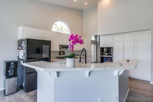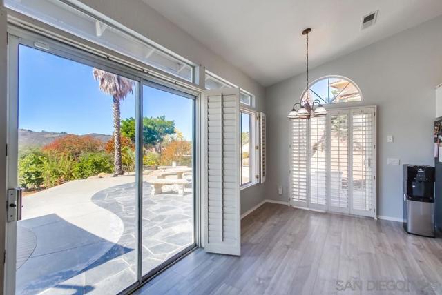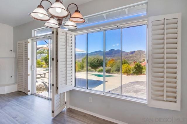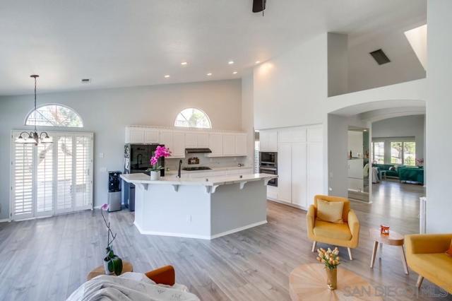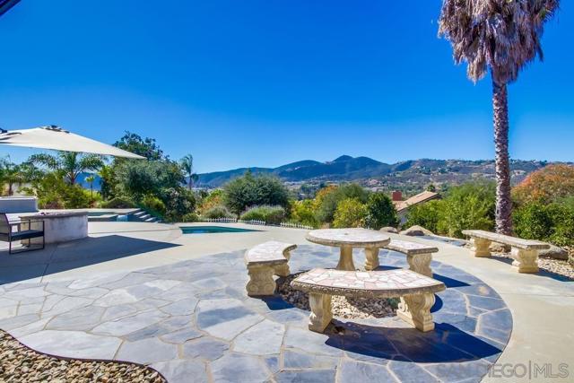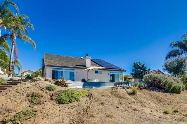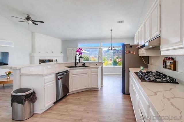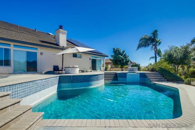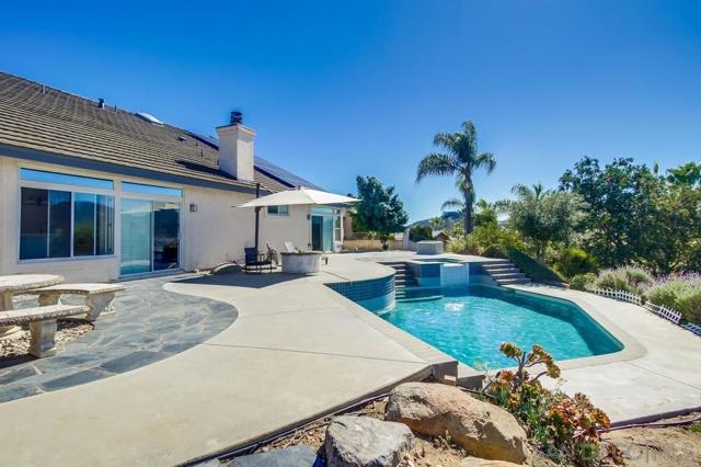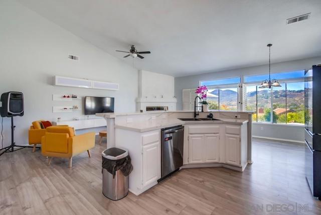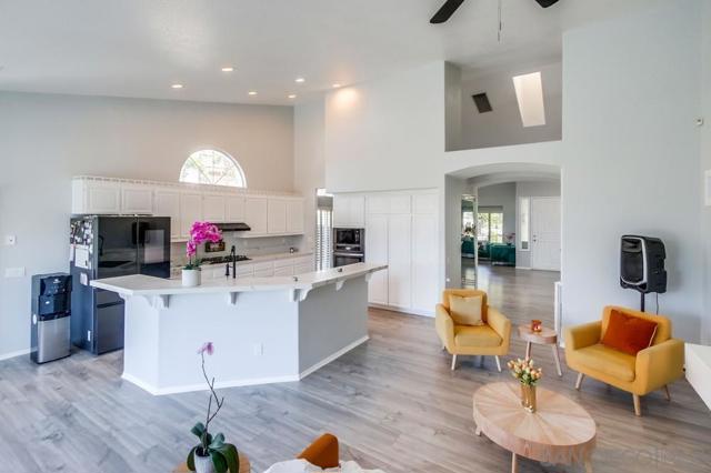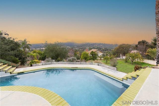 Experience elevated single-story living in this beautifully remodeled home located in desirable Southwest Escondido, just minutes from Lake Hodges and one of San Diego’s largest shopping destinations. Set on nearly a half-acre lot with breathtaking views from the kitchen and main living areas after master bedroom, this 4-bedroom, 2-bath residence blends comfort, privacy, and modern efficiency. The open-concept floor plan features vaulted ceilings, luxury plank flooring, and abundant natural light. The gourmet kitchen is the heart of the home—designed to capture stunning views while offering quartz countertops, stainless steel appliances, a spacious center island, and custom cabinetry that flows seamlessly into the family room with a cozy fireplace. The primary suite provides direct backyard access, a walk-in closet, and a spa-inspired bath with dual sinks, soaking tub, and separate shower. Three additional bedrooms offer flexibility for guests, a home office, or hobbies. Outdoors, enjoy multiple patios, mature landscaping, and plenty of space for entertaining or future expansion. A 28-panel owned solar system, Tesla charger, RV parking, and a three-car garage add exceptional convenience. With NO HOA and close proximity to top-rated schools, shopping, dining, and outdoor recreation, this home offers style, sustainability, and panoramic Southern California living.