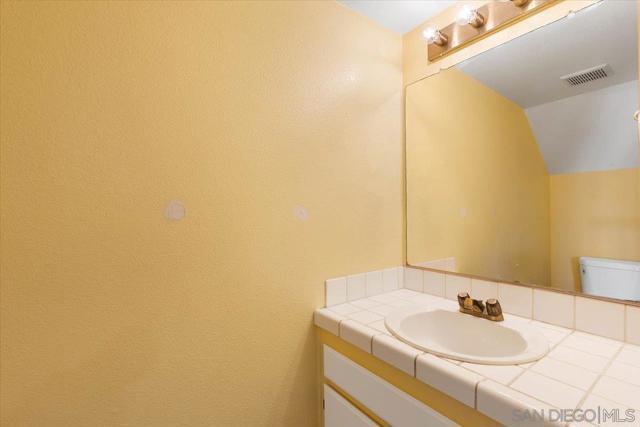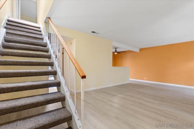 Excellent location in South Escondido! 3 bedroom, 2 & 1/2 bath townhome with central A/C & heat, in unit laundry, 2 parking spaces (one covered, one uncovered, both just steps from the unit), charming brick fireplace & large enclosed patio! French doors off living room lead directly onto an additional front patio. Tons of storage throughout. All bedrooms are upstairs. Spacious primary bedroom has ensuite bathroom & large walk-in closet. Additional full bath upstairs. Living room, kitchen and dining area are downstairs along with a space which could easily be used as a semi-private office or formal dining room. There's also a half-bath downstairs for guests and a well-sized laundry room. Community Pool, multiple jacuzzi's plus a 1ft deep children's pool. Ample visitor parking behind & surrounding the unit, great for guests & holidays. Easy access to mailbox. HOA includes water! Very peaceful complex with mature landscaping & meandering pathways. A wonderful place to call home!