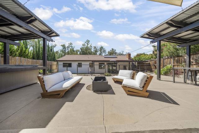 Beautifully updated 3 bed 2 bath home on a spacious .23 acre corner lot with two way access and a fully gated entry. Recent upgrades include a remodeled kitchen and bathroom, asbestos free interior, terracotta roof shingles, and a recent HVAC tune up. Enjoy eco friendly living with paid off solar, Tesla batteries, and Tesla wall charger. Outdoor highlights include a huge carport with covered RV parking with hook ups, room to expand or potentially add an ADU, covered patio, fire pit, heated jacuzzi under gazebo, an additional gazebo, and fruit trees. Additional features: wood burning fireplace, upgraded windows, recently redone driveway, and livestock included.