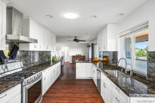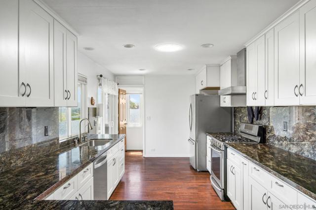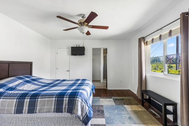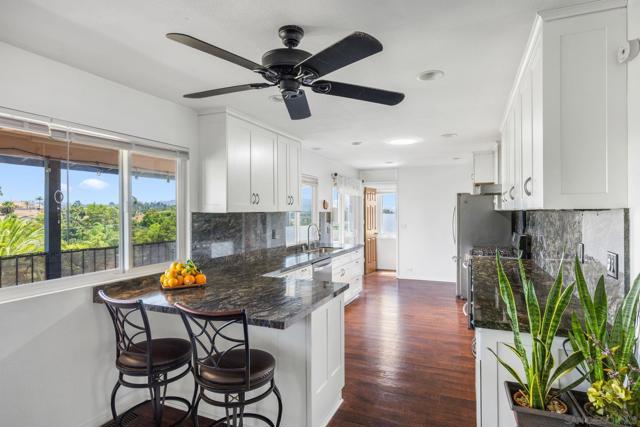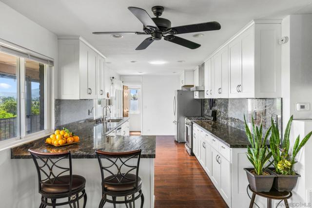 STRICTLY BY APPOINTMENT ONLY. Tucked away on a private cul-de-sac in one of Escondido’s most peaceful neighborhoods, this spacious 4-bedroom, 3-bath home blends comfort, versatility, and investment potential. Set on an elevated .36-acre lot with sweeping views and no HOA, it offers privacy, charm, and convenience — just minutes from top-rated schools, Kit Carson Park, Vineyard Golf Course, Westfield North County Mall, the San Diego Safari Park, and the coast. Filled with natural light, the home has been thoughtfully renovated in 2015 and 2021, with fresh paint inside and out this year. Upgrades include paid-off solar, dual-paned windows, ceiling fans, central AC with a smart thermostat, and an ADT security system. The kitchen features updated cabinetry, granite counters, and a stylish backsplash that flows into the dining and living areas. The lower level, with its own entrance, full kitchen, bath, and fireplace, is ideal for multi-generational living or rental income. Both entries are stair-free, offering accessibility for aging parents. With ample storage, a laundry/work area, and a detached storage unit, it’s also well-suited for a work-from-home lifestyle. Outside, a gated driveway with automated entry accommodates 8+ cars and welcomes guests with a white picket fence, turf lawn, roses, palms, and low-maintenance landscaping. Expansive upper and lower decks showcase sunrise-to-sunset views, while fruit trees — including orange, guava, fig, nectarine, lemon, and papaya — add a loved, well-tended touch. The versatile lower level includes its own private entrance, full kitchen, bathroom, and a cozy log-burning fireplace — making it an ideal space for multi-generational living, rental income, or even dividing into two units. Both entry points are accessible without stairs, creating an excellent option for aging parents. With abundant storage throughout, including a dedicated laundry/tool/work area and an additional detached storage unit, the home also doubles as the perfect work-from-home setup with valuable tax benefits. Outdoors, the property truly shines. The gated driveway with automated entry accommodates 8+ cars, while the front yard welcomes guests with a classic white picket fence, quality artificial turf, palms, roses, and other low-maintenance landscaping supported by a sprinkler system. Security is enhanced with wired Night Owl cameras monitoring every entry point. Expansive upper and lower decks showcase breathtaking sunrises, sunsets, and rolling hill views. Fruit trees — including orange, guava, fig, nectarine, lemon, and papaya — alongside vibrant rose gardens make the property feel loved and well cared for.