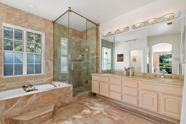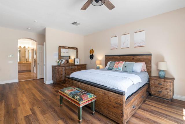 Rancho Verde Estate with Amazing Pool on Nearly an Acre, No HOA, Solar, Tesla Charger and Powerwall! Discover this beautifully upgraded 5-bedroom, 4-bathroom home for sale in Rancho Verde Estates, one of North Escondido’s most desirable neighborhoods. This spacious 3,663 sq. ft. estate home features an open-concept floor plan with soaring ceilings, designer lighting, and a completely updated chef’s kitchen with quartz countertops, custom cabinetry, high-end appliances, and an oversized island perfect for entertaining. The luxurious primary suite is conveniently located on the first level and offers direct access to the backyard oasis, perfect for enjoying morning coffee or evening sunsets by the pool. This home is equipped with solar panels (30 owned, 17 leased) dramatically reducing energy costs while providing sustainable living. Additional upgrades include a whole house water filtration system and water softener, ensuring clean, high-quality water throughout the home. The property offers true resort-style living with a sparkling pool, expansive patio, lush landscaping, and peaceful mountain views. The large private lot provides space to relax and entertain, all just minutes from Lake Hodges, I-15 freeway access, shopping, dining, and top-rated schools. Priced at $1,899,000, a rare opportunity to own a solar-powered estate in Rancho Verde Estates at an exceptional value.