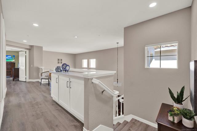 Emerald Heights stunner with ocean views! This fully renovated home offers a seamless blend of style, comfort, and functionality. Step inside to soaring ceilings and a bright formal living and dining room framed by glass doors showcasing expansive inland and ocean views. The dream kitchen features all-new finishes, an oversized pantry, and abundant storage. The spacious family room includes custom built-ins and picture-perfect windows, with a large laundry room and half bath conveniently located on the main level. Upstairs, new LVP flooring leads to an open hallway and four bedrooms, including a stunning primary suite with a private balcony to enjoy sunset and ocean views, an incredible remodeled bathroom, and a generous walk-in closet. The home also features fully owned solar and a new HVAC system, offering both comfort and efficiency year-round. The backyard is designed for entertaining with low-maintenance landscaping and plenty of space to gather. Located in the desirable gated community of Emerald Heights and zoned for the San Marcos School District, residents enjoy no Mello-Roos, a low HOA, and resort-style amenities including 24/7 security, walking trails, basketball courts, gym, Jr. Olympic pool, playground, kiddie pool, clubhouse, and a full calendar of community events throughout the year.