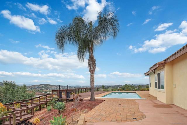 Stunning Single-Story Home | Panoramic Views | 3.69 Acres Beautifully maintained single-level home featuring 3BR + office/4th BR, 2.5 BA, open-concept layout with formal dining, family room, living room, and breakfast nook. High ceilings, ceiling fans in all rooms, Wood plantation window covering on all windows throughout the house, whole-house generator, and large gourmet kitchen. Expansive outdoor living space includes solar-heated salt water pool with auto cover, 3-car garage, RV parking, and multiple fruit trees (including avocado). Situated on a private 3.69-acre lot with nearly 360° views. Move-in ready! Welcome to your dream home—where modern comfort meets breathtaking views. This stunning single-story residence offers nearly 360-degree panoramic vistas that must be seen to be believed. Thoughtfully designed with both style and function in mind, the home features 3 spacious bedrooms, a dedicated office/gym that can easily serve as a 4th bedroom, 2.5 BA and high ceilings that create an open, airy atmosphere throughout. The gourmet kitchen is perfect for the home chef, seamlessly connecting to the family room, living room, formal dining area, and a cozy breakfast nook—ideal for both entertaining and everyday living. All rooms are outfitted with high-quality ceiling fans and light fixtures for comfort and elegance. Wood plantation shutters on all windows throughout the house. window inserts for energy efficiency. Outside, enjoy a large sparkling pool equipped with solar heating and an automatic cover, perfect for year-round enjoyment. The expansive 3.69-acre lot includes a variety of mature fruit trees—including multiple avocado trees—offering both beauty and bounty. Additional highlights include: A 3-car garage Dedicated RV parking and ample space for recreational toys Whole-house generator for peace of mind Elegant foyer entrance that makes a lasting first impression This home combines functionality, luxury, and natural beauty—offering a truly welcoming and versatile space to call your own.