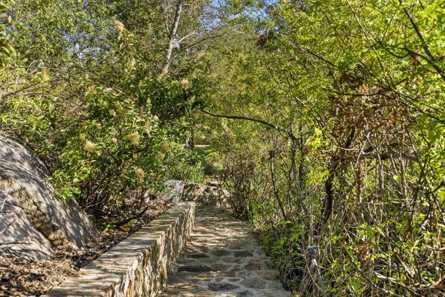 Welcome to 28889 Anderson Court, an enchanting Spanish Mission-inspired residence perfectly sited on 2.14 acres for the ultimate in privacy. From the moment you arrive via the long, private driveway and porte-cochère, you’ll feel a sense of tranquility surrounded by lush landscaping, mature specimen palms, and postcard-perfect vistas. Soaring views to the south and west create an incredible light orientation and a front-row seat to nature’s beauty—complete with abundant wildlife and magical ocean and sunset views. The elevated setting, perched at 1750 feet above sea level, offers a unique microclimate, ideal for vibrant landscaping and future expansion opportunities. Inside, the home spans four bedrooms, including a spacious primary suite with panoramic views and a generous closet. Designed with flexibility in mind, the property easily lives as a three-bedroom main home plus an attached 1000sf guest suite—perfect for multi-generational living, hosting guests or as a partitioned rental unit or home office. The suite features its own private entrance, bedroom, bathroom, office and laundry hookups, plus pre-installed 220 electric and plumbing for a stove, fridge, sink, chandelier and space for a breakfast lounge. The main level boasts a grand living room with vaulted ceilings and a cozy fireplace, an oversized dining room that opens to views of the pool and gardens, and a well-appointed kitchen flowing seamlessly into a generous family room with direct access to a spacious, covered outdoor loggia. Step outside and discover an entertainer’s paradise: a sparkling pool and spa, expansive sun patios, lush lawns for play, and a private viewing pavilion overlooking the grounds. Beyond the landscaped area, an unfenced portion of the lot offers exciting possibilities to add a tennis or pickleball court, vineyard, additional guest house, or private garden retreat. Additional features include an oversized three-car tandem garage with abundant storage, room to create a wine cellar, and timeless handcrafted stone exterior walls reminiscent of historic California missions. This exceptional property is located within Rimrock Estates, an exclusive, guard-gated community celebrated for its privacy, security, and breathtaking views. Known as one of the most desirable enclaves in North San Diego County, Rimrock Estates offers a serene retreat from city life while remaining just minutes from shopping, dining, and freeway access. The community is defined by its elevated lots with sweeping mountain and coastal vistas, stunning custom homes on large private parcels, and proximity to golf, equestrian facilities, wineries, and great schools. Combining luxury living with a strong connection to nature, Rimrock Estates delivers an idyllic setting for those who value privacy and beauty. This property is far more than just a home—it’s a sanctuary. Experience the perfect blend of classic architecture, peaceful living, and endless opportunity at 28889 Anderson Court.