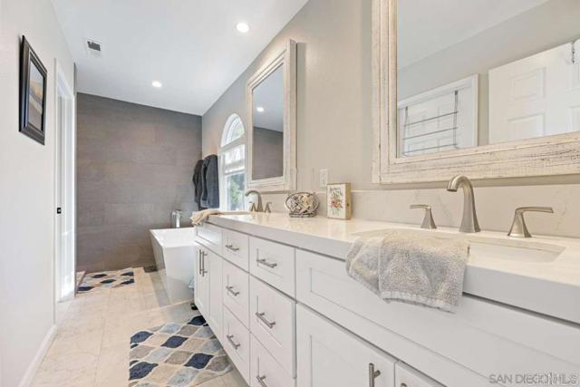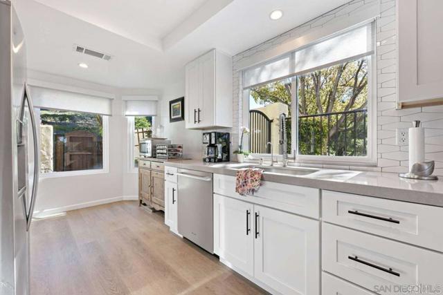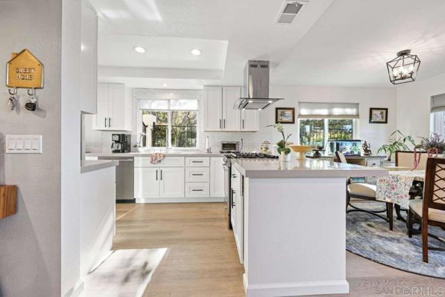 **Seller will consider a credit to buyer for up to 12 months of HOA dues** Spectacular home located at the end of a quiet cul de sac in the gated community of Sonata/Allegro in South Escondido. This is an attached home sharing 1 wall. One of the best lots in the neighborhood! Enjoy a private feel with no neighbors to the left of the home. A gorgeous parklike setting with multiple trees surrounds you. Charming courtyard entry through a custom wood gate. Inside, you are greeted with high ceilings and large windows on all sides. So much natural light! Upgrades include vinyl floors throughout the first floor, quartz countertops in the kitchen, newer cabinets, modern backsplash, gas range, and a quaint breakfast nook. Your dining room opens up to a living area with a cozy fireplace. On the first floor you have a bedroom with sliding door access to the courtyard, and full bathroom. Upstairs features a guest bedroom and bathroom with dual sinks, master suite with vaulted ceilings and a spa inspired master bathroom. Also on the 2nd story is access to a large deck where you can enjoy views and the peaceful outdoors. Relaxing backyard, perfect for BBQ's. Spacious 2 car garage with new water heater and electrical ready for EV charger. This home is located conveniently close to the pool. Community features tennis courts, beautiful streets for walking, multiple parks, and gated entry. HOA maintained exterior. This South Escondido home makes for an easy lifestyle! So close to a number of amenities to enjoy - Target, Westfield North County Mall, The Vineyard Golf Course, Orfila Winery, the Wild Animal Park, and much more. We look forward to having you check it out!