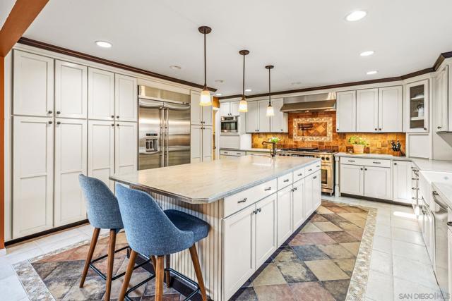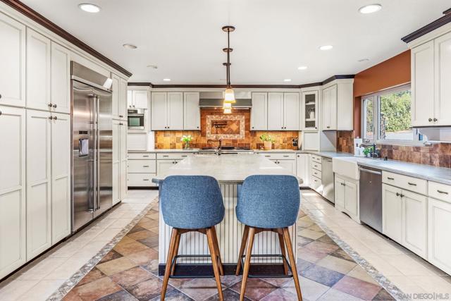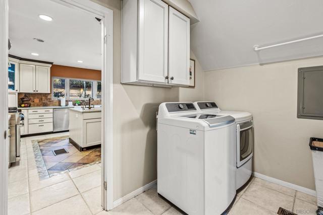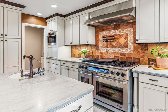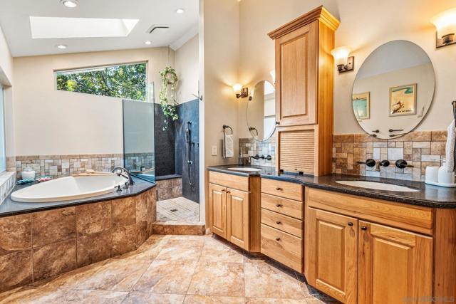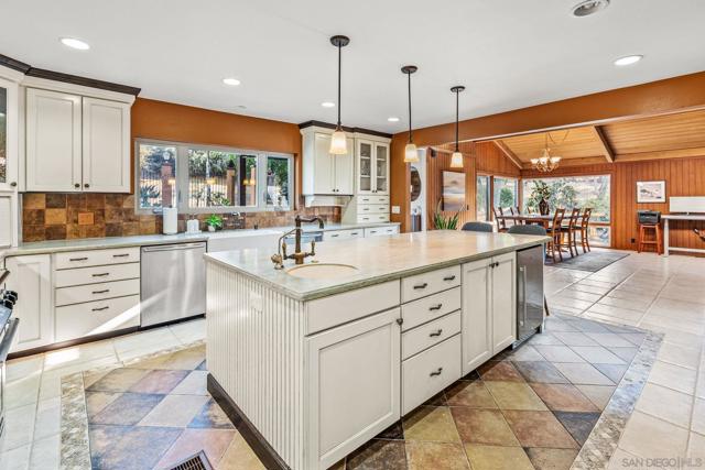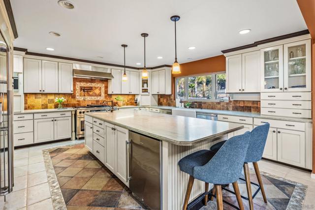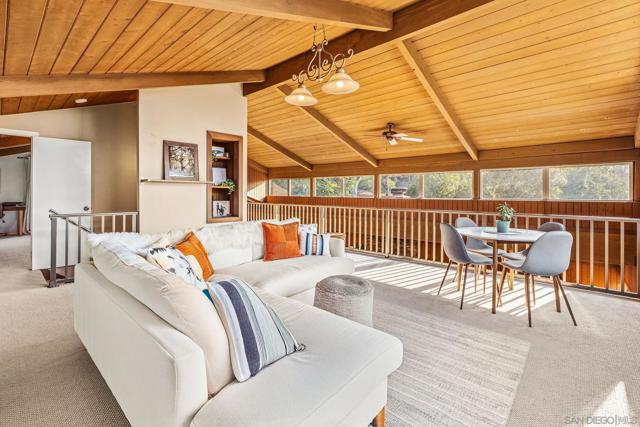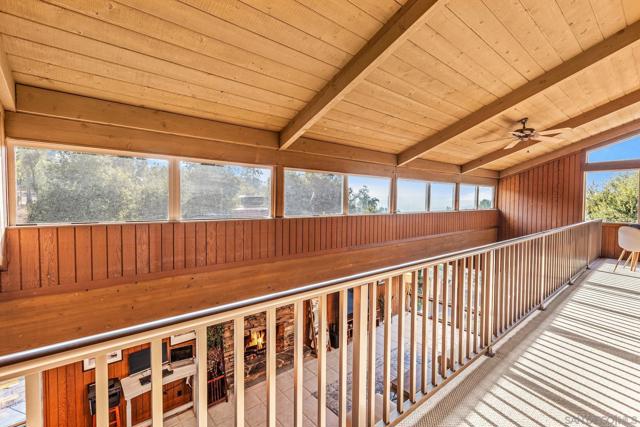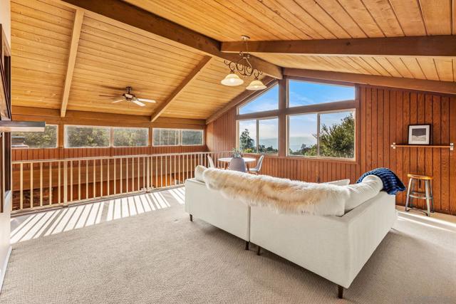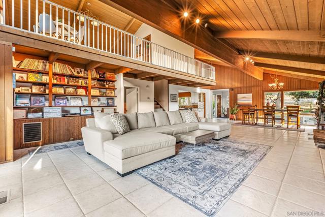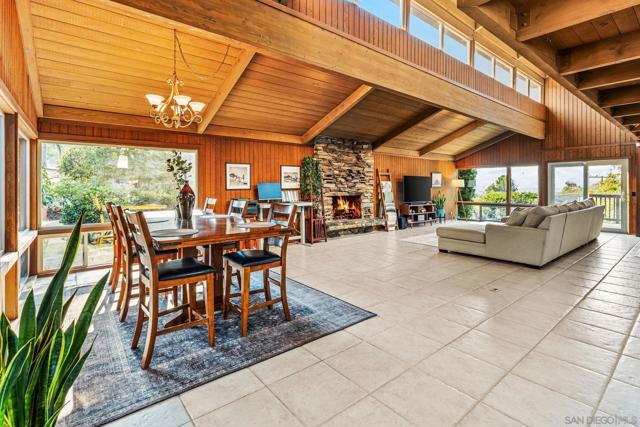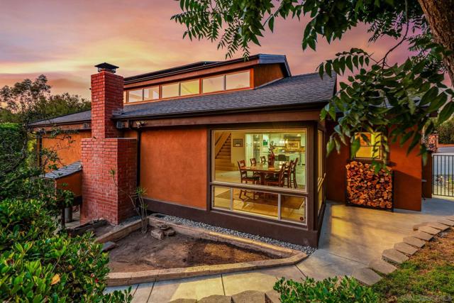 Pristine Fallbrook gated retreat on 1.64 acres, surrounded by lush landscaping and sweeping panoramic views. Beyond the double wrought-iron gates lies an exquisite custom home that seamlessly blends energy efficiency with extensive, tasteful renovations; crafted for both comfort and entertaining. While conveniently located near main thoroughfares, the home and grounds remain exceptionally quiet and private. Enhanced insulation and updated windows ensure a serene interior, while the tranquil koi pond at the entry adds to the calming ambiance. The property is adorned with fruit and nut trees including pomegranate, citrus, loquat, kumquat, and macadamia, welcoming you into a lush, garden-like setting. Inside, an open-concept design with vaulted ceilings, natural rock fireplace, warm wood accents, and expansive windows fills the home with light and gives it a cozy vibe. The chef’s kitchen shines with high-end appliances, pendant lighting, and durable composite countertops. The entry-level primary suite opens to a panoramic-view porch, and its spa-inspired bath features dual sinks, a soaking tub, walk-in shower, and rich wood cabinetry. Upstairs, a spacious loft overlooks the living room and offers flexibility as a third bedroom, game room, or secondary living space, alongside a generously sized second bedroom and full bath. Recent upgrades include a new roof, updated windows and insulation, a new heat/AC pump, and an owned 40-panel solar system. With breathtaking vistas of rolling hills, this private and peaceful oasis is truly a must-see!