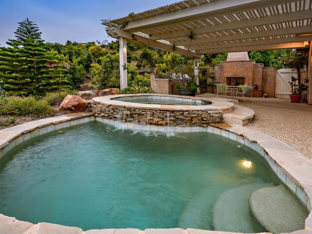 Gorgeous, single story estate with breathtaking panoramic views! Gourmet kitchen with Bosch Dishwasher, Dacor Microwave, Dacor Double Oven, Dacor Warming Drawer, Dacor Gas Range with 5 burners, GE Monogram Refrigerator, Granite center island with a sink, walk in pantry plus Butler’s pantry and beautiful cherry wood cabinets. Enjoy the incredible view from your secluded pool and spa with outdoor fireplace and BBQ area. See Supplemental Neighborhoods: Rancho Monserate Equipment: Garage Door Opener,Pool/Spa/Equipment, Range/Oven, Vacuum/Central Other Fees: 0 Sewer: Septic Installed Topography: LL,GSL,SSLP