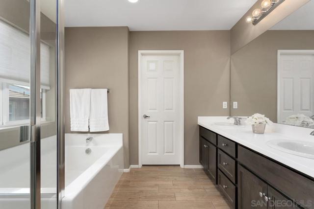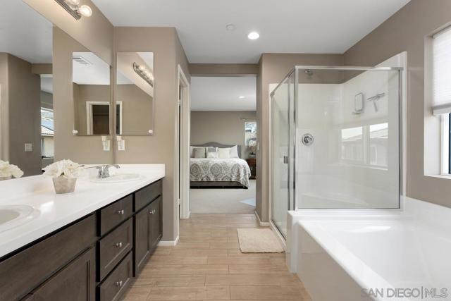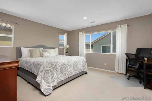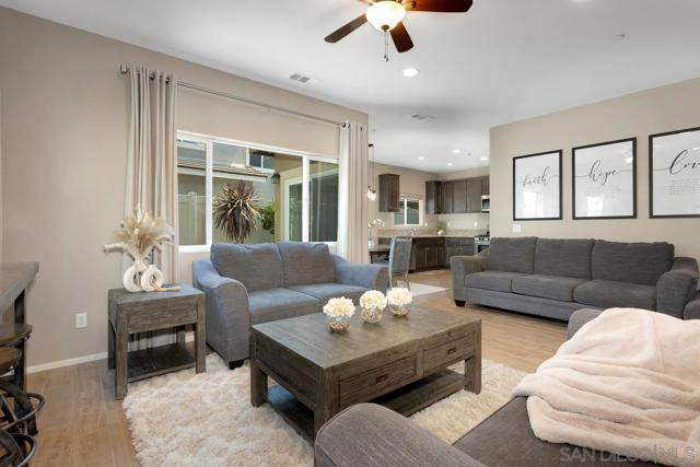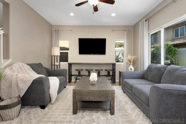 Modern and efficient living in the desirable Brindle Pointe neighborhood at Horse Creek Ridge. This upgraded 3 bed 2.5 bath home features solar, central A/C, EV hookup, and beautiful tile flooring throughout the main level. The open floor plan includes a well-equipped kitchen, upstairs laundry, and a spacious primary suite with a soaking tub, walk-in shower, and walk-in closet. Enjoy a low-maintenance backyard, HOA-maintained front yard, whole-house fan, and security system. Just one home away from the community pool and walking distance to multiple parks and trails. The resort-style community offers pools, clubhouse, BBQ areas, playgrounds, and scenic walking paths, all designed to complement the Southern California indoor-outdoor lifestyle. Conveniently located minutes from downtown Fallbrook, local wineries, hiking, and Camp Pendleton. Brindle Pointe at Horse Creek Ridge combines comfort, efficiency, and lifestyle in one incredible package.