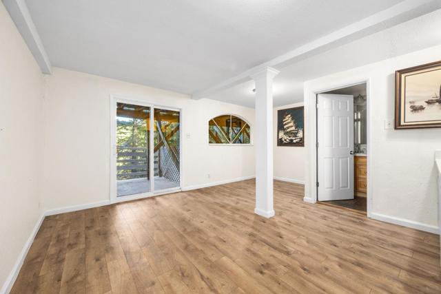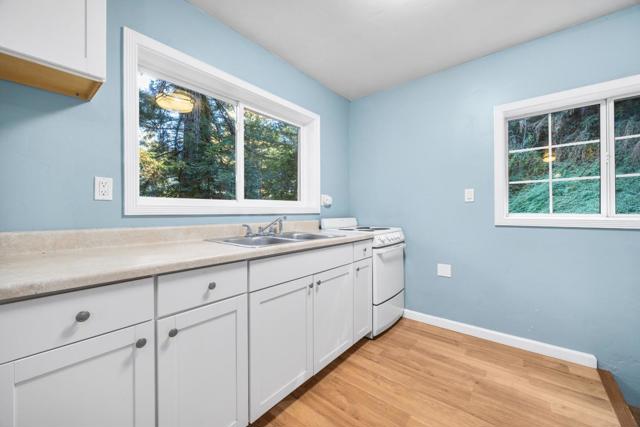Nestled among the towering redwoods, this serene home offers a unique income opportunity with multiple living options on an acre of land. The main house features two bedrooms, one bathroom, and a spacious living room with a cozy wood-burning stove. Step out to the front deck and enjoy your morning coffee while surrounded by the beautiful natural scenery. The kitchen has been upgraded with stainless steel appliances and granite countertops, and luxury vinyl tile flooring runs throughout the home. Downstairs, a separate "in-law" studio unit provides additional living space, with a bathroom and kitchen cabinets with sink, as well as a private deck off the living area. The lower portion of the property is a separate two-story unit, with one bedroom, one bath, and a well-appointed living area and kitchen upstairs, along with a bedroom, laundry hookups, and additional storage downstairs. This property truly offers the best of both worlds, providing a peaceful, private retreat just five miles from the nearest grocery store and less than 1 mile from the shores of Loch Lomond, where you can enjoy kayaking, paddle boating, fishing, or simply take a leisurely stroll around the lake.