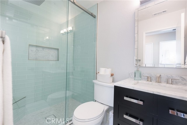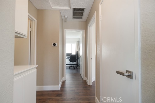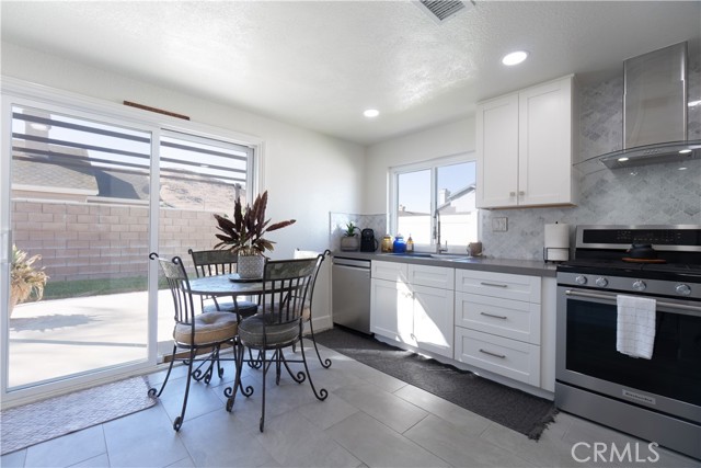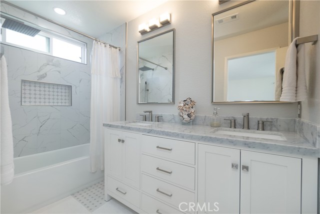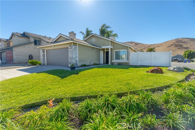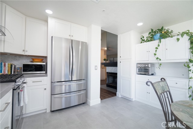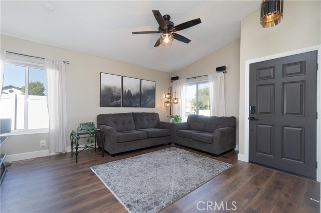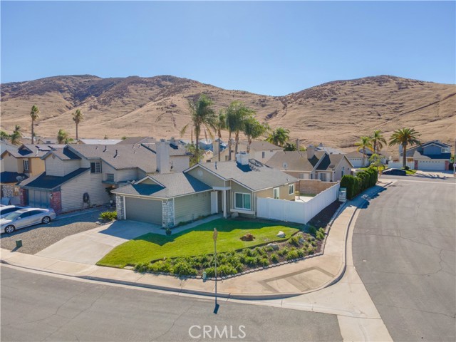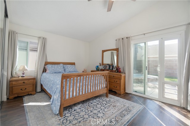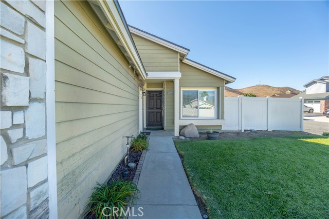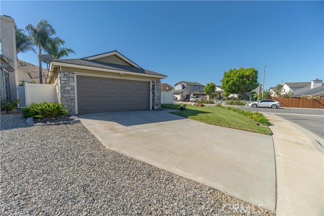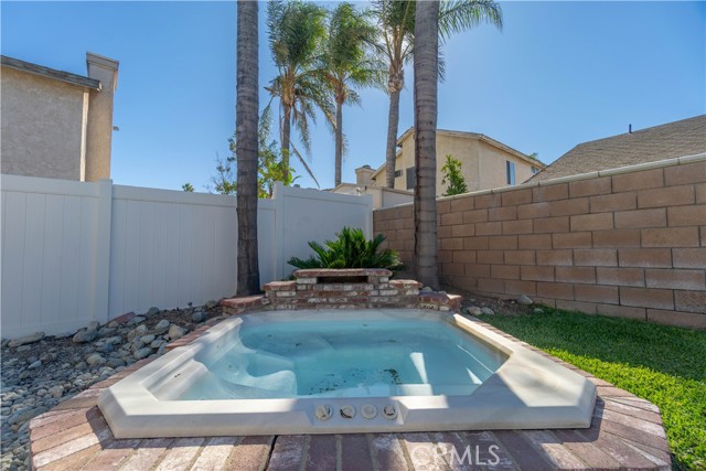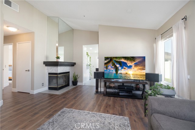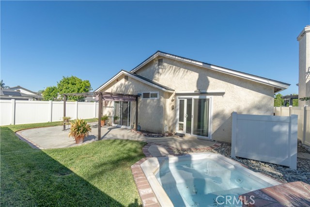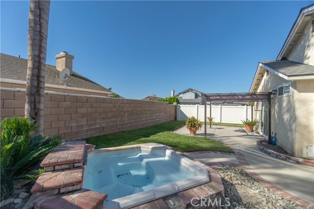 Welcome to this beautifully remodeled Southridge Village home, perfectly situated on a highly desirable CORNER LOT! From the moment you arrive, the NEW FRONT DOOR invites you inside to a bright living room with soaring VAULTED CEILINGS. The COZY FIREPLACE is framed with elegant Arabesque Carrera marble tile perfectly matching the kitchen backsplash, and the newer ENGINEERED WOOD FLOORING flows seamlessly from the living room through the hallways and bedrooms. Step into the heart of the home—the newly REMODELED KITCHEN and dining area featuring crisp white cabinetry with soft-close doors/drawers, grey QUARTZ COUNTERTOPS, and a full suite of STAINLESS STEEL APPLIANCES, which opens to the patio with a sun-shaded PERGOLA, perfect for outdoor dining and entertaining, and a relaxing IN-GROUND SPA. Down the hallway, the remodeled guest bathroom showcases a custom WALK-IN SHOWER with a frameless glass door, stylish glass tile in shower, and MARBLE accents. An inviting guest bedroom, that can double as an office, includes a ceiling fan with remote, while the PRIMARY SUITE offers vaulted ceilings and access to your patio where you can enjoy your spa while gazing at the stars, or walk into your LUXURIOUS SPA-LIKE BATH with a double marble vanity with marble accents. Imagine soaking in your TUB for a perfect end to your day! What truly sets this home apart are the thoughtful NEWER upgrades ensuring comfort for years to come: HVAC system, engineered wood floors, beautiful tile floors, water heater, garage door, front door, roof, vinyl fencing in yard, and double-paned windows & sliding doors throughout! Conveniently located near parks, schools, shopping, restaurants, freeways, and a community center—this turnkey home is ready for you!