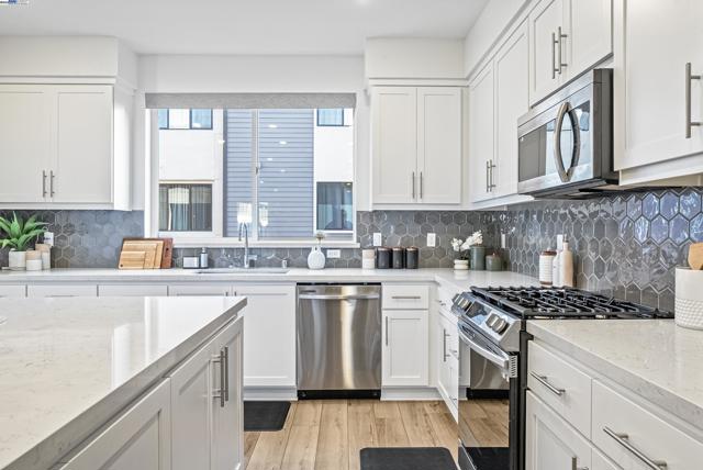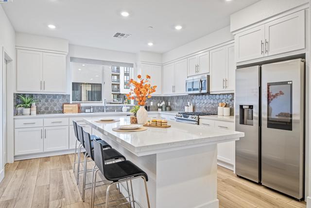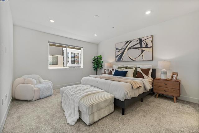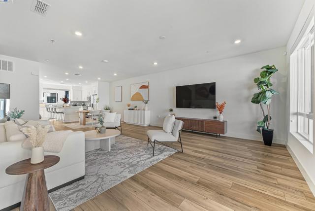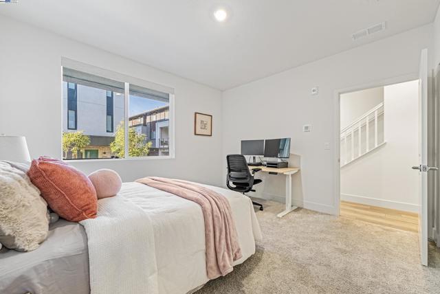 Welcome to a modern haven in the heart of Fremont! This exquisite townhouse at 3285 Internet Common, Unit 1005, offers a smart layout that perfectly balances style and functionality. Spanning 2,297 square feet, this spacious home features four generous bedrooms and four bathrooms, ensuring ample space for everyone. The main level boasts a convenient bedroom and bathroom, ideal for guests or a private home office. The open-concept kitchen seamlessly flows into the covered patio, creating a perfect setting for both indoor and outdoor entertaining. With owned solar panels, this home is not only beautiful but energy-efficient. Located near the Warm Springs BART station, the residence also offers easy access to major highways 680 and 880, making commute a breeze. This townhouse is situated in a vibrant neighborhood, known for its convenient location and modern amenities. Enjoy the community amenities, including a park, clubhouse, and swimming pool. For those who work at Tesla Fremont location, the proximity is unbeatable. Whether you're relaxing in the spacious living areas or enjoying the community features, this home offers a lifestyle of comfort and sophistication. Don't miss the opportunity to make this exceptional property your own.