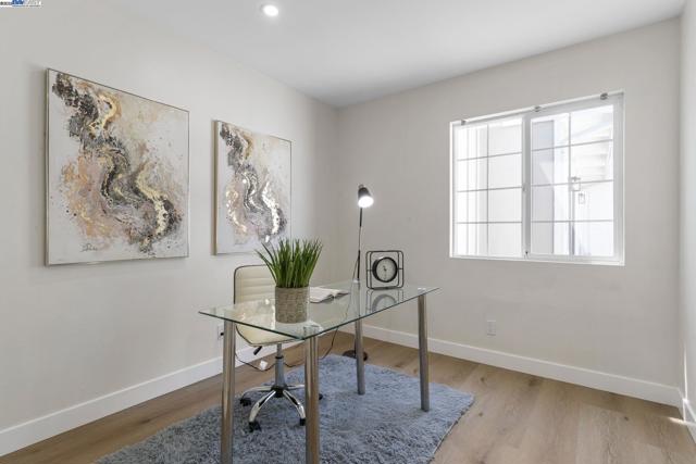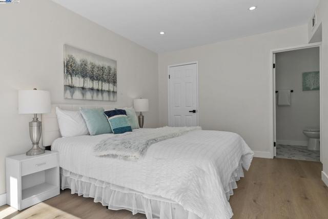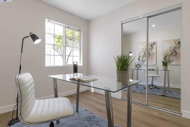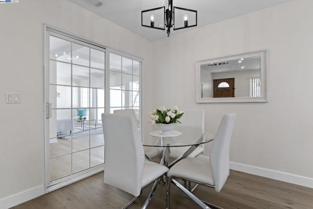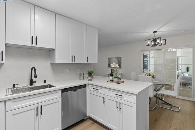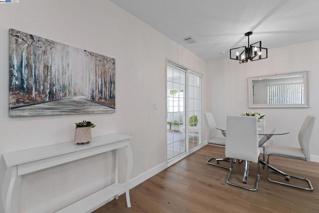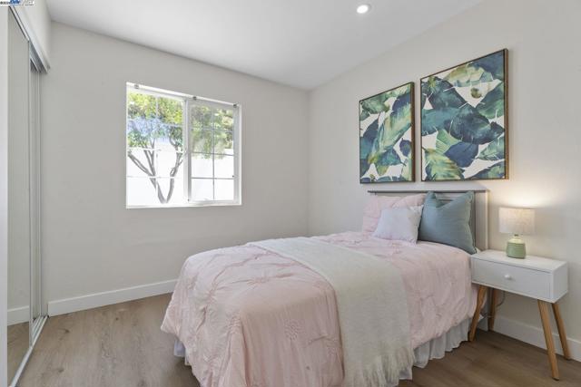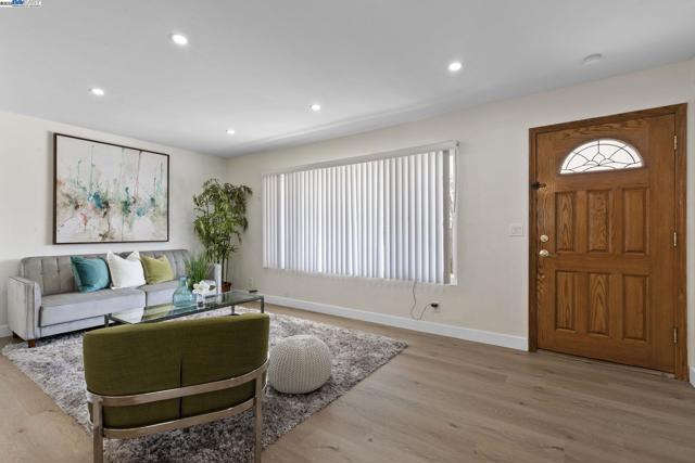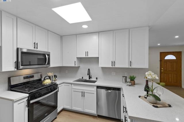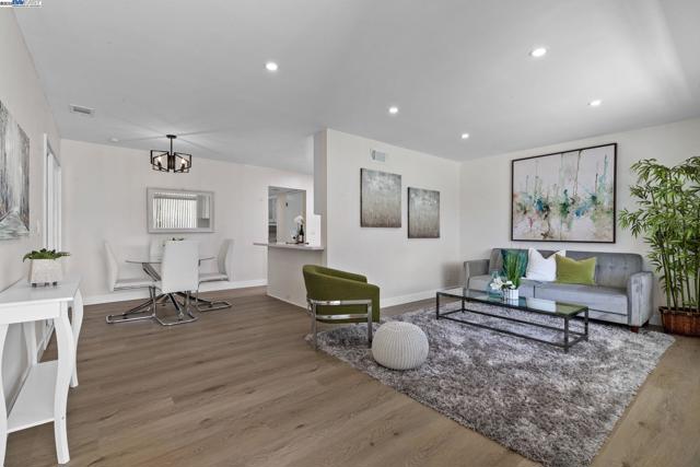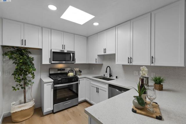 Welcome to this beautifully updated 3 bedroom, 2 bathroom home in Fremont’s sought-after Lakes and Birds community. Offering 1,276 sq ft of living space on a 3,440 sq ft lot, this home blends modern comfort with inviting design. A freshly planted lawn with smart-timed sprinklers enhances curb appeal. Inside, the spacious living room is filled with natural light, contemporary paint, and recessed lighting. Skylights, dual-pane windows, and sliding glass doors brighten the home throughout. The renovated kitchen boasts new cabinets, stainless steel appliances, Quartz counters, and breakfast bar seating. Stylish LVP flooring with new baseboards flows through the home. The large primary suite includes a walk-in closet, remodeled bath, and backyard access. Both bathrooms are beautifully updated with LED mirrors. Secondary bedrooms are airy with large closets. A dedicated laundry room with 220V outlet adds convenience. The bonus sunroom opens to the low-maintenance backyard with a new planter and retaining wall. Ample storage includes a two-car garage with built-ins plus multiple closets. Home was re-piped with copper plumbing in 2010. Top Fremont schools!
