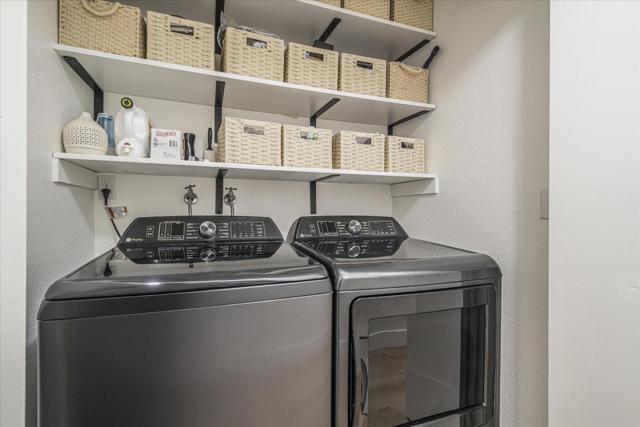 Welcome to this stunning, move-in-ready corner unit condo in one of Fremont's most desirable neighborhoods! Located on the second floor, this beautifully upgraded home is filled with natural light and offers the perfect blend of style, comfort, and convenience. The spacious open-concept living and dining area features a cozy fireplace with a custom wood mantle, ideal for relaxing or entertaining. The updated kitchen includes white cabinetry, granite countertops, and newer stainless steel appliances, including a refrigerator and microwave/fan combo. Enjoy the ease of in-unit laundry with a newer washer and dryer, plus custom shelving for added storage. Step out to your private patio, perfect for morning coffee or a quiet evening. The spa-like bathroom features double sinks, a custom vanity, updated tile, and modern shower fixtures. Beautiful contemporary flooring flows throughout the home, adding to its turnkey appeal. Community amenities include a sparkling pool, fitness center, underground parking with an assigned space, and a personal storage unit. All just minutes from BART, major freeways, Lake Elizabeth, libraries, trails, and top shopping and dining. This turnkey home has it all: prime location, premium features, and fantastic amenities. Don't miss it!