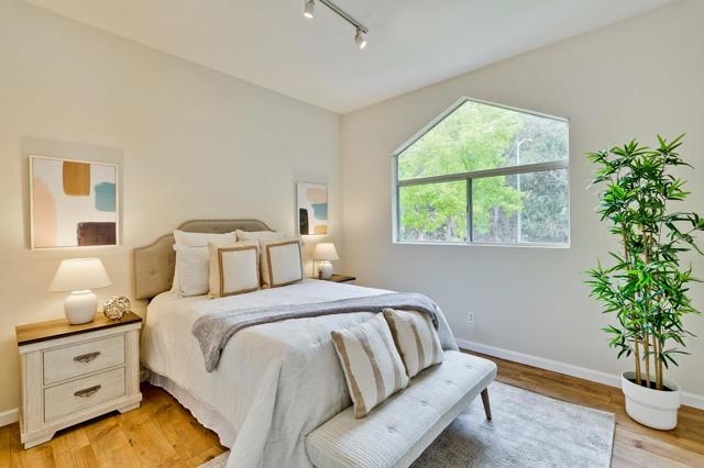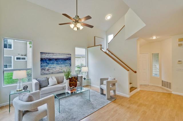 Welcome home to this rare, move-in-ready, 3-bedroom, 2-bathroom end-unit townhouse in the desirable Forest Park neighborhood. This two-story, 1250 sqft residence features an open-concept floor plan with soaring ceilings and large double-pane windows that fill the home with natural light. The kitchen is designed for efficiency with stainless steel appliances and ample storage. The spacious primary bedroom offers a relaxing retreat. Step outside to your private patio, perfect for relaxing or entertaining guests. The home also includes an in-unit washer and dryer, central AC and heater and a convenient attached garage. Enjoy the benefits of a low HOA that covers water, exterior maintenance, and access to a community pool and greenbelts. This prime location offers easy access to major freeways, shopping centers, and shuttle stops for major tech companies. It's adjacent to Ardenwood Historic Farm and hiking trails, steps away from Forest Park Elementary/Frank Fisher Park and close to Thornton Junior and American High. Don't miss this one. It won't last long!