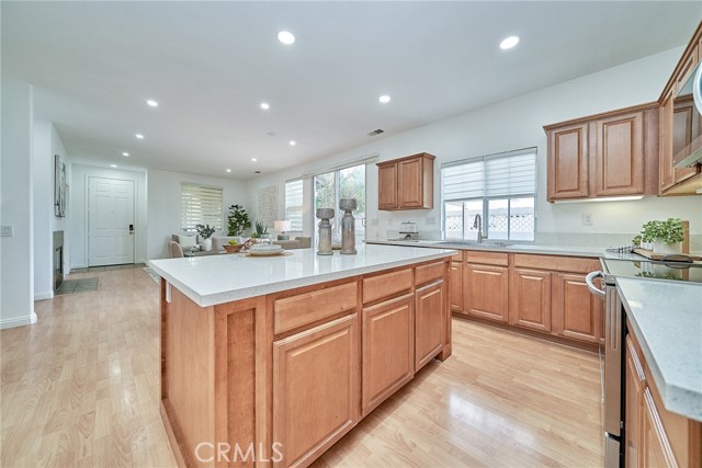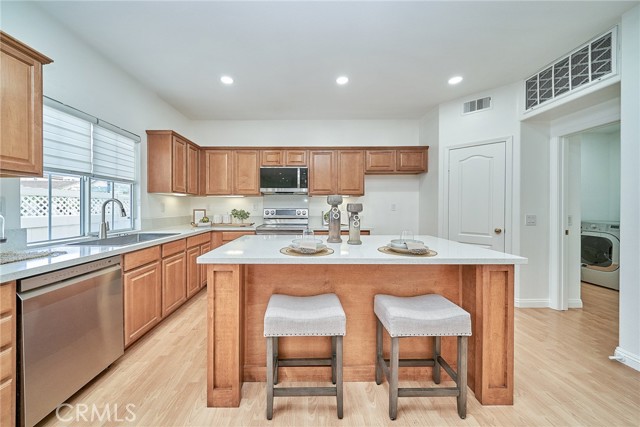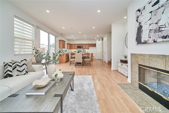 Beautifully Upgraded 4-Bedroom Home with Loft in Highly Desirable Amerige Heights – Sunny Hills & Fisler Schools! Welcome to this gorgeous Stoneybrook model detached single-family home in the prestigious Amerige Heights community. Built in 2003 and freshly enhanced, this 4-bedroom, 3-bath residence offers stylish living space on a prime corner end lot, filled with natural light and surrounded by neighborhood charm. Step inside to a bright and open floor plan featuring a spacious living room with a cozy fireplace and large windows. The chef’s kitchen is designed for both beauty and functionality—complete with quartz countertops, a center island, maple cabinetry, stainless steel appliances, and a large built-in pantry. A convenient MAIN-FLOOR BEDROOM with a full bath is perfect for guests or multi-generational living. Upstairs, the home features three additional bedrooms plus a generous loft/den, ideal for a home office or family room. The primary suite boasts a walk-in closet, soaking tub, separate shower, and dual sinks. Additional highlights include fresh interior paint, recessed lighting, new bathroom countertops, new vanities, and laminate wood flooring, along with an inside laundry room offering direct access to the 2-car garage. Enjoy outdoor living on your private side patio, perfect for BBQs or a small garden. This end-unit location offers extra natural lights, plentiful guest parking, and a nearby park just steps away. Located within walking distance to top-rated Fullerton schools—Robert Fisler K–8 and Sunny Hills High School—and just minutes from Amerige Heights Town Center, offering shopping, dining, and recreation. Community amenities include high-speed internet, tennis courts, playgrounds, and beautifully maintained parks. Low Mello Roos. This home perfectly blends comfort, convenience, and location—a rare opportunity to own in one of Fullerton’s most sought-after neighborhoods!