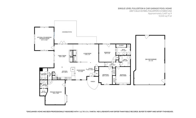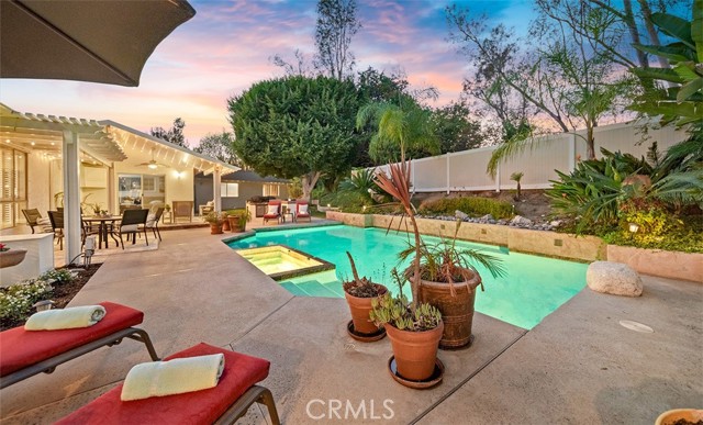 Set at the end of a peaceful cul-de-sac in one of Fullerton’s most established neighborhoods, this single-level home offers both space and serenity. Spanning 2,467 square feet on a generous 12,540-square-foot lot, the property is thoughtfully designed for comfortable living and easy entertaining. From the moment you arrive, the long private driveway and impressive six-car detached garage (approx 42' x 24' and 1,000 sq ft) set the tone for what’s inside. The garage offers rare flexibility, ideal for car enthusiasts, storage, or a future ADU or JADU conversion. Step inside and you’ll find a bright, open layout with four spacious bedrooms and three full bathrooms, and an office or bonus room or optional 5th bedroom just off the family room with access to the gorgeous backyard. The living areas flow naturally, with large windows framing views of the backyard and letting soft natural light fill the home. The kitchen serves as the home’s centerpiece, connecting to a casual dining space and family room where everyday life unfolds. Just outside, the backyard feels like a private retreat with a sparkling pool and spa surrounded by mature landscaping, perfect for gatherings or quiet weekends at home. Calle Ultimo (translated to "the last street") is the kind of street where neighbors look out for each other and kids play freely, a pocket of calm that feels far from the rush of city life. Fullerton is known for its strong sense of community, rich history, and safety. Local parks, golf courses, and the Famous Fullerton Loop spanning 11+ miles of walking & biking trails are close by, along with easy access to downtown Fullerton’s restaurants and coffee shops. Families appreciate the home’s location within the award-winning Fullerton Joint Union High School District, known for schools like Sunny Hills High and Parks Junior High. 2207 Calle Ultimo is more than a home. It’s a rare combination of space, privacy, and community in one of North Orange County’s most sought-after settings.