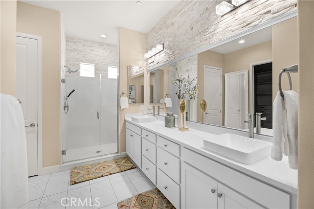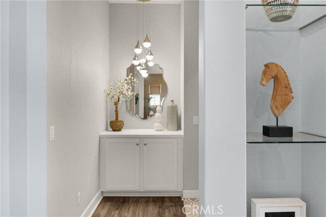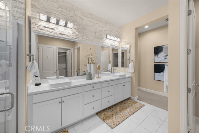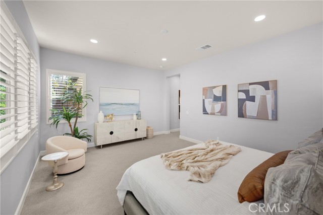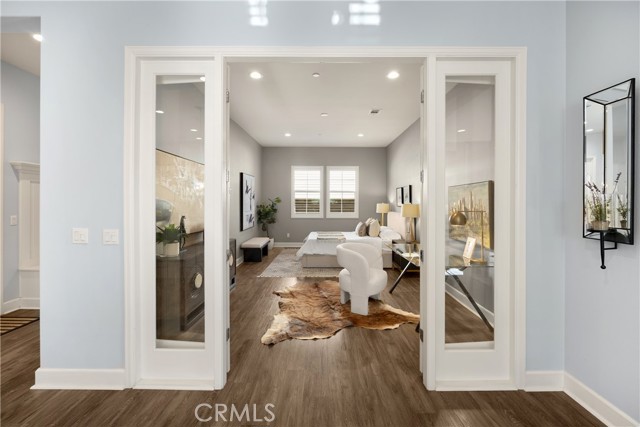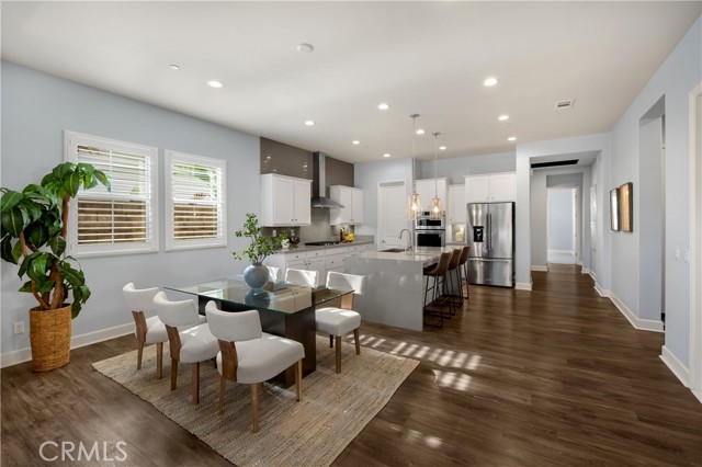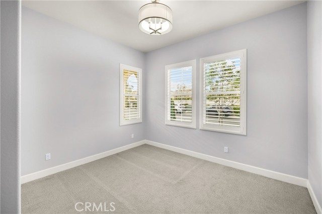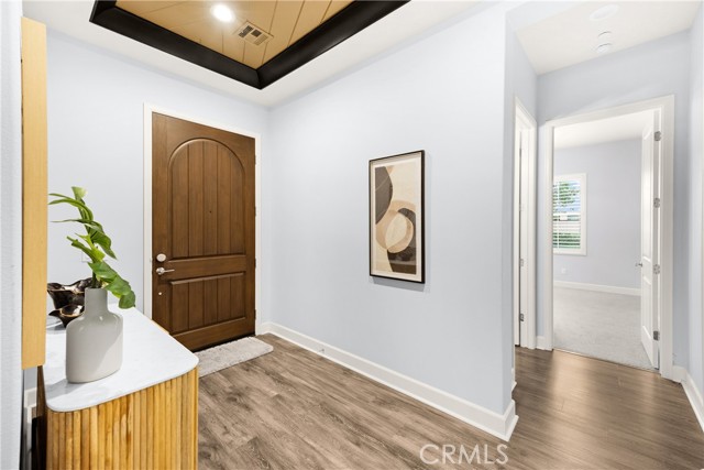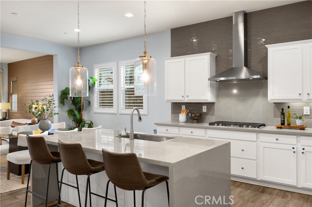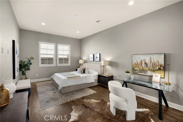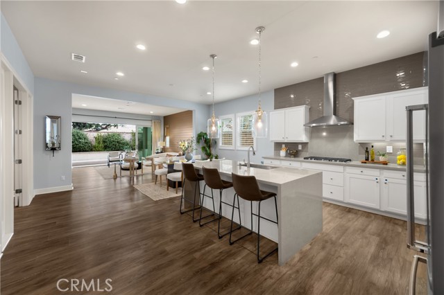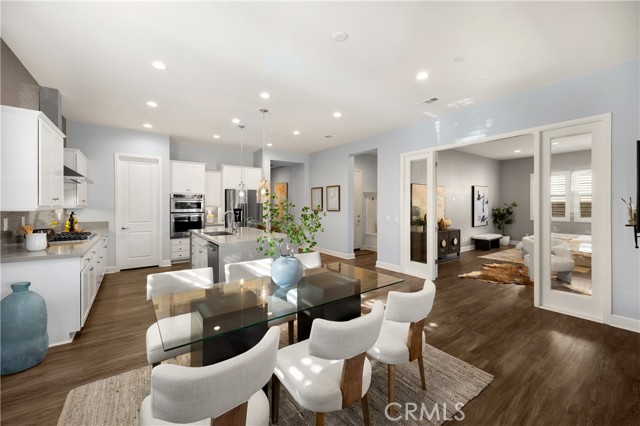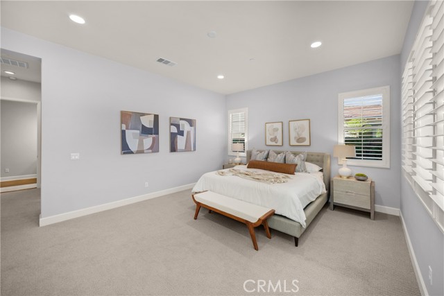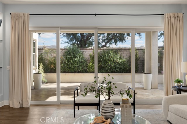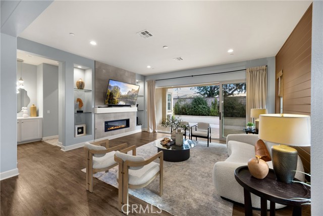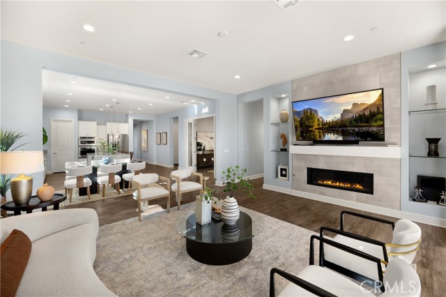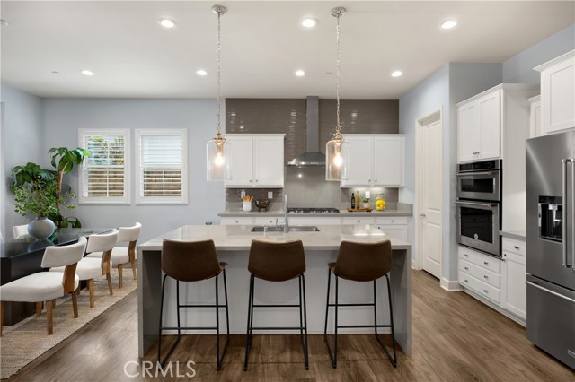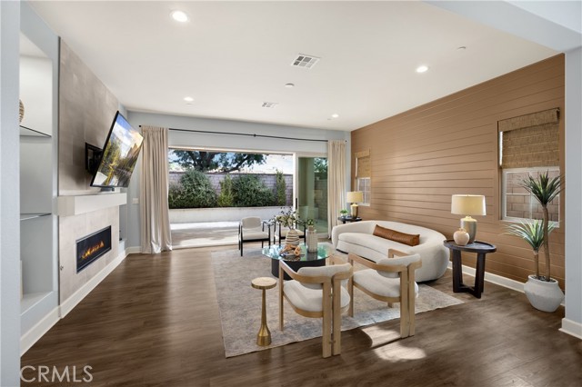 Welcome to this stunning 55+ residence in a private community, where modern elegance meets everyday comfort. From the moment you step through the front door, you’re greeted by a refined entryway with a custom coffered ceiling—setting the stage for the thoughtful design found throughout the home. The open-concept floor plan is perfect for both relaxed living and entertaining. At the heart of the home, the gourmet kitchen showcases a striking granite waterfall island, premium KitchenAid appliances, a spacious walk-in pantry, and sleek finishes sure to impress any culinary enthusiast. The adjacent dining area and bright, airy living room are bathed in natural light, creating a warm and inviting atmosphere. Slide open the oversized glass doors to the California room, offering seamless indoor-outdoor living—ideal for enjoying Southern California’s year-round sunshine. The living room features a cozy gas fireplace with contemporary glass rock and a custom shiplap accent wall, adding a touch of sophistication. The expansive primary suite is a true retreat, complete with plush carpeting, oversized windows, and an en-suite bathroom featuring dual vanities, a walk-in shower, private water closet, ample linen storage, and a customized walk-in closet with built-in cabinetry. Additional highlights include elegant wood shutters throughout, an upgraded garage with built-in storage and epoxy flooring, and a flexible third bedroom currently used as an open office—easily adaptable to suit your needs. The sellers have made exceptional upgrades throughout the home, ensuring every detail reflects quality and care. Located in a vibrant, welcoming community with abundant amenities and activities, this home offers the perfect blend of luxury, comfort, and convenience.